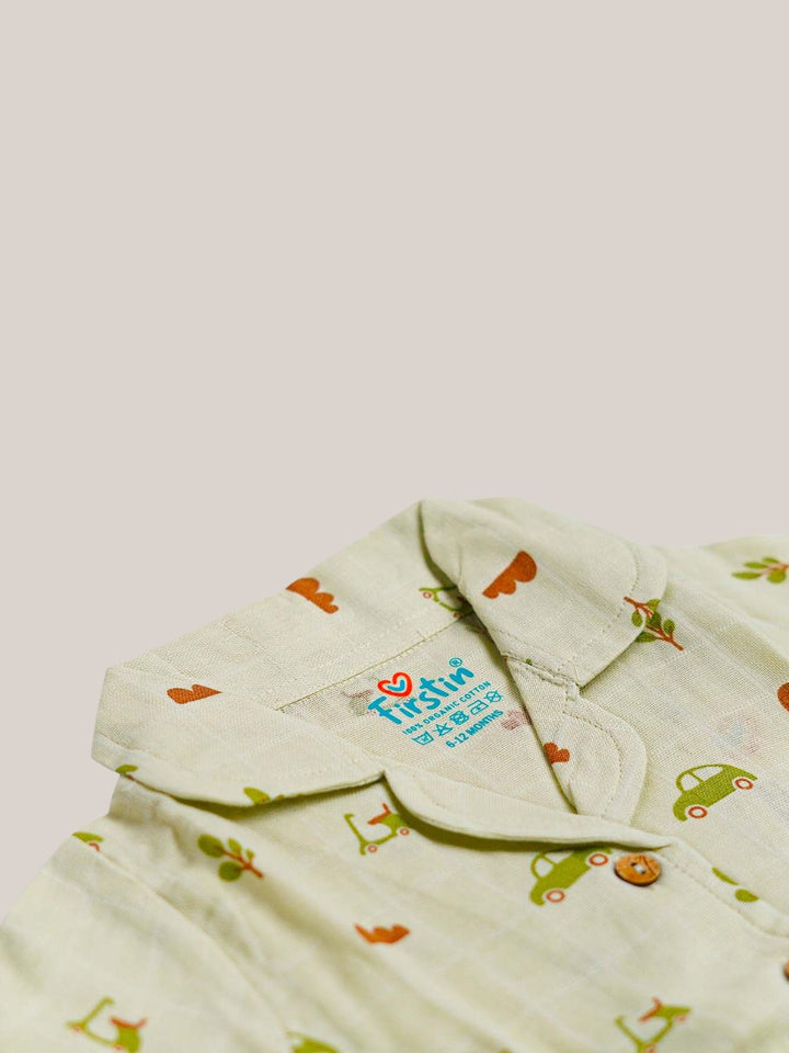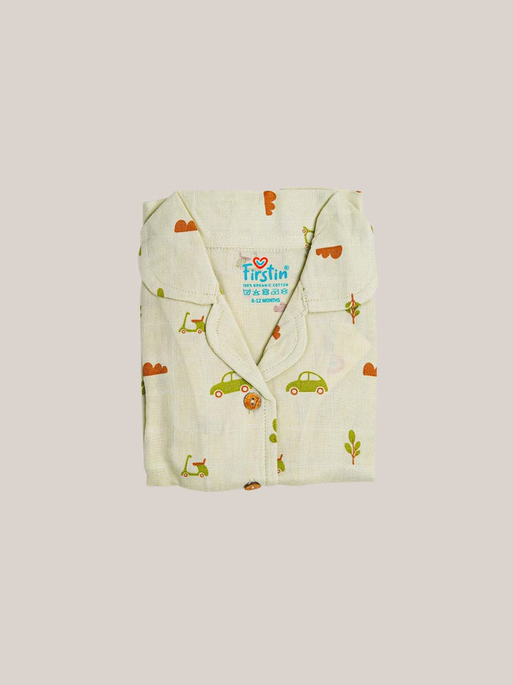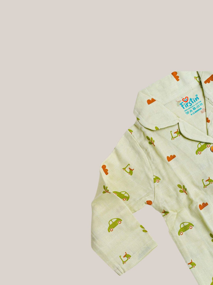 The FIRSTIN Printed Muslin Baby Night Suit Set is a thoughtfully designed sleepwear ensemble for infants, combining comfort, breathability, and style. Crafted from soft, breathable muslin cotton, it ensures your baby stays cool and comfortable throughout the night.