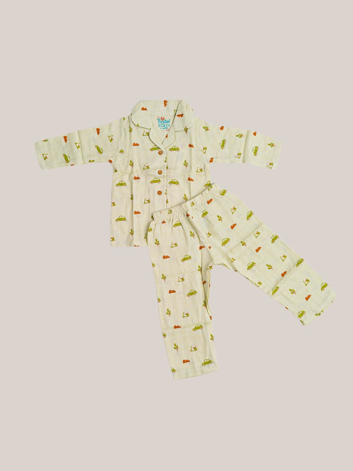 FIRSTIN Aloe Wash Vespa Printed Muslin Night Suit Set