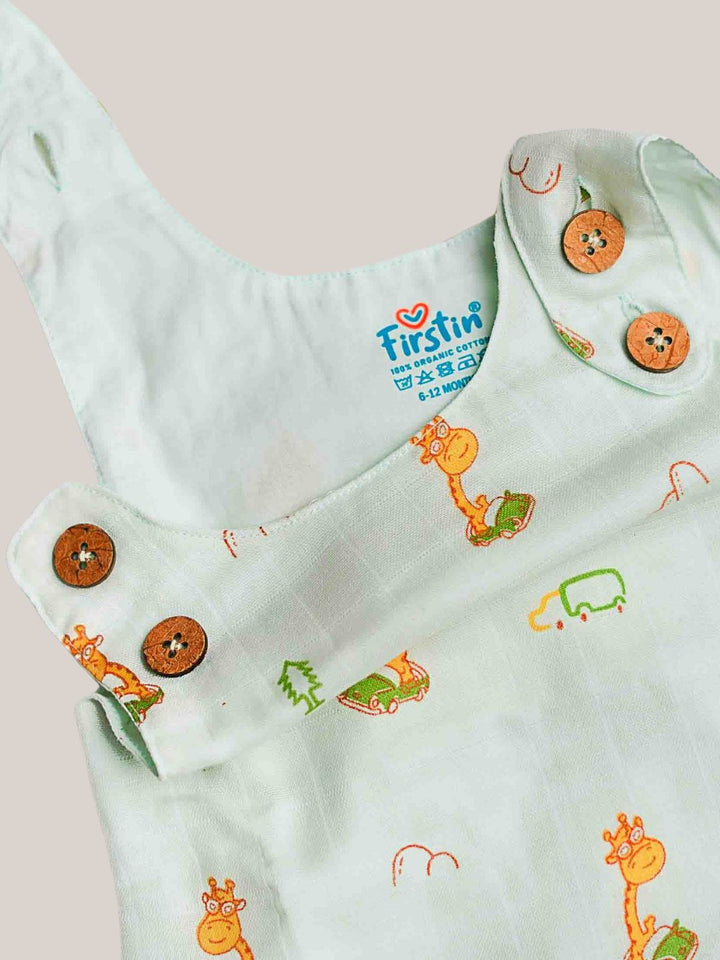 FIRSTIN Frost Joyous Giraffe Muslin Tent Frock With Print
