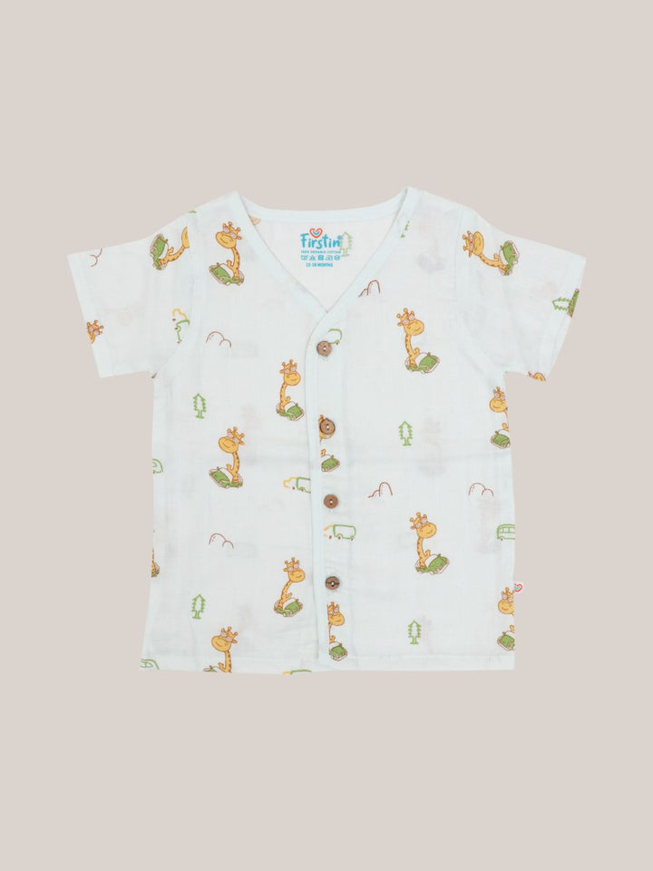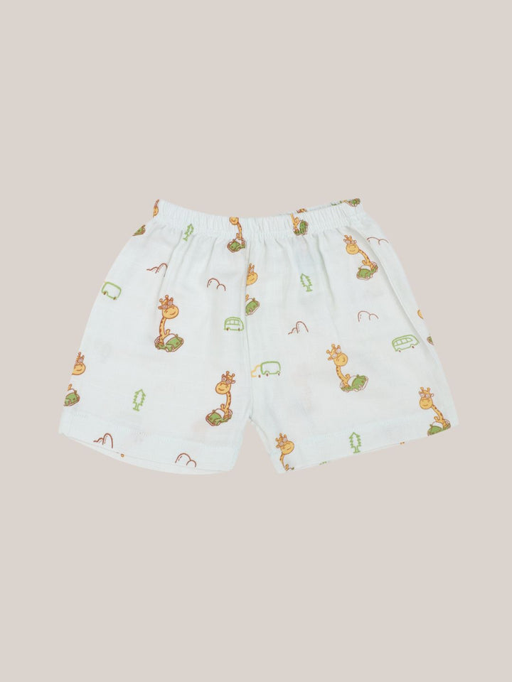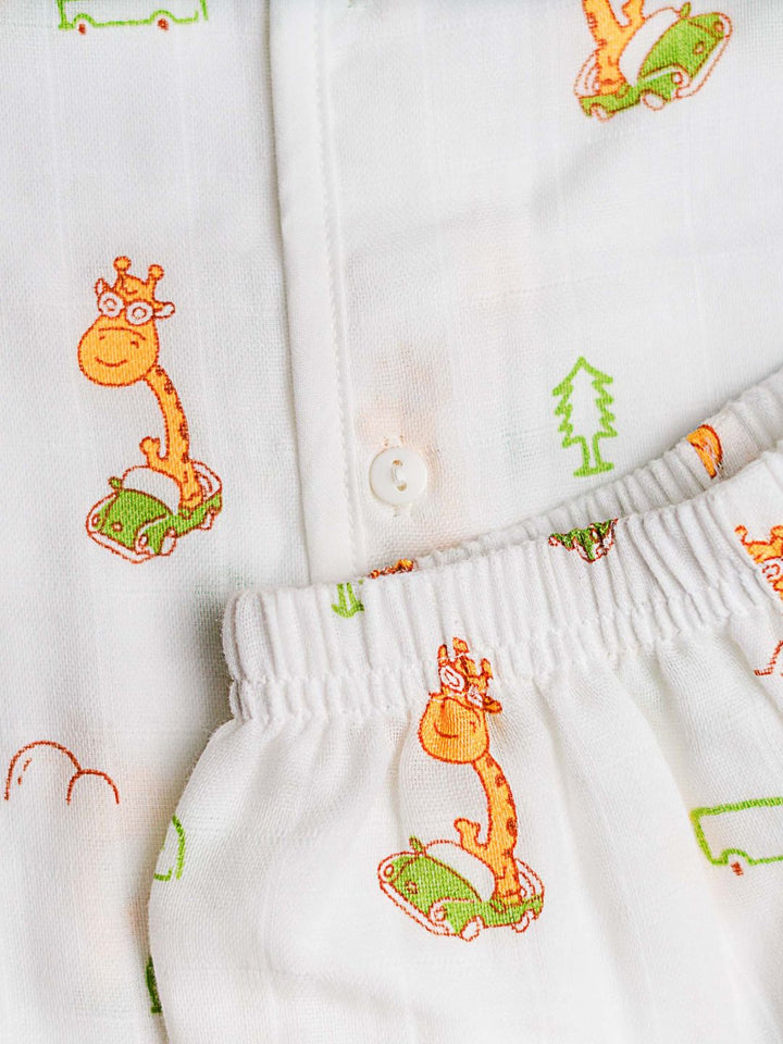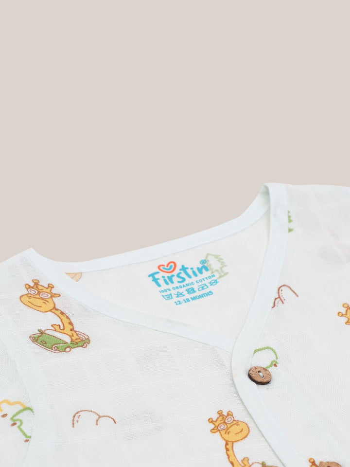 FIRSTIN Frost Joyous Giraffe Printed Muslin Jabla Shorts Set Half Sleeve
