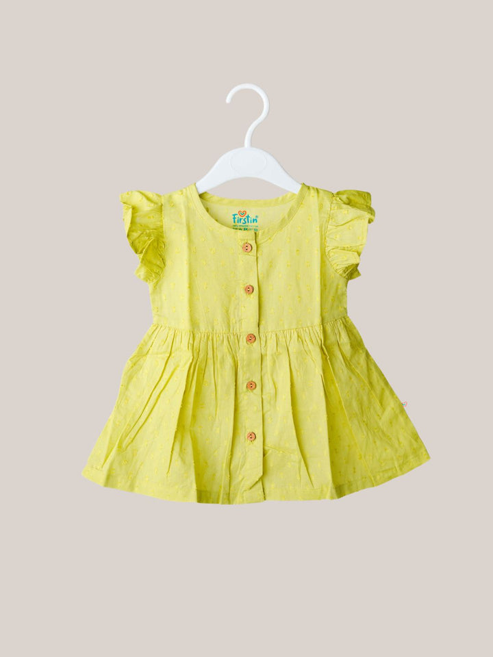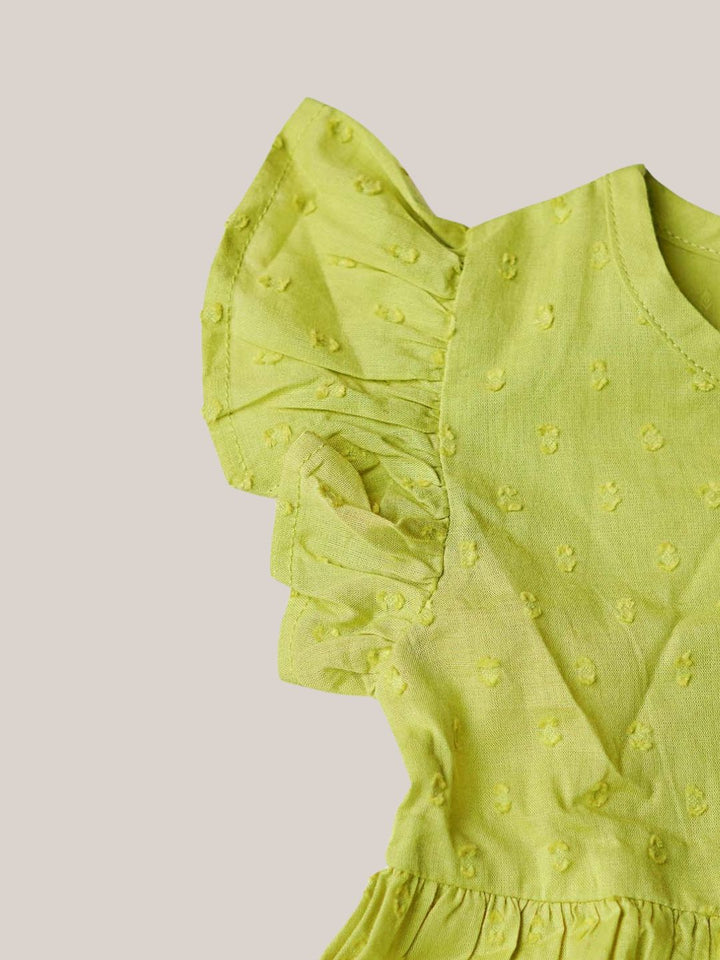FIRSTIN Swiss Dobby Half Sleeve Casual Frock - Palm Green