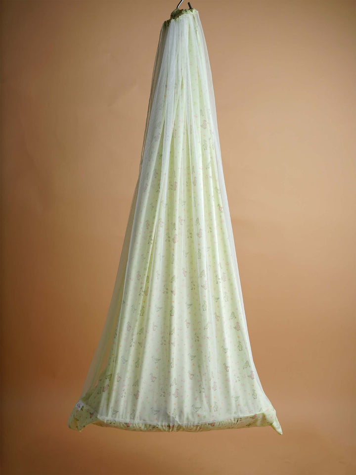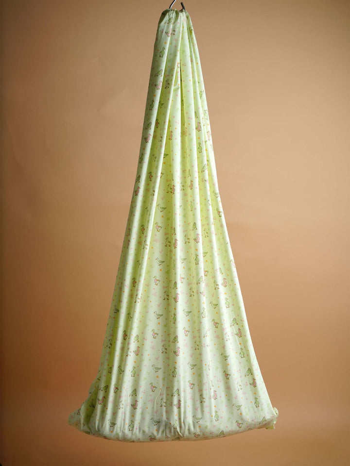 FIRSTIN Lime Cream Runner Duck Printed Poplin Cradle / Thottil / Jhula With Net