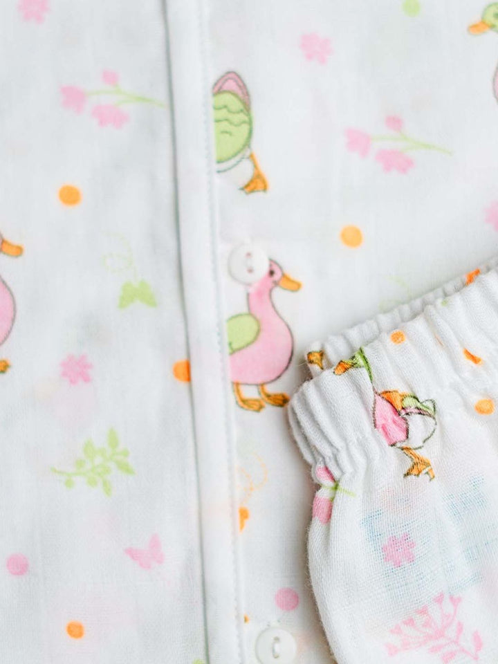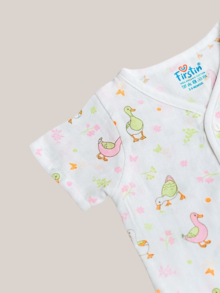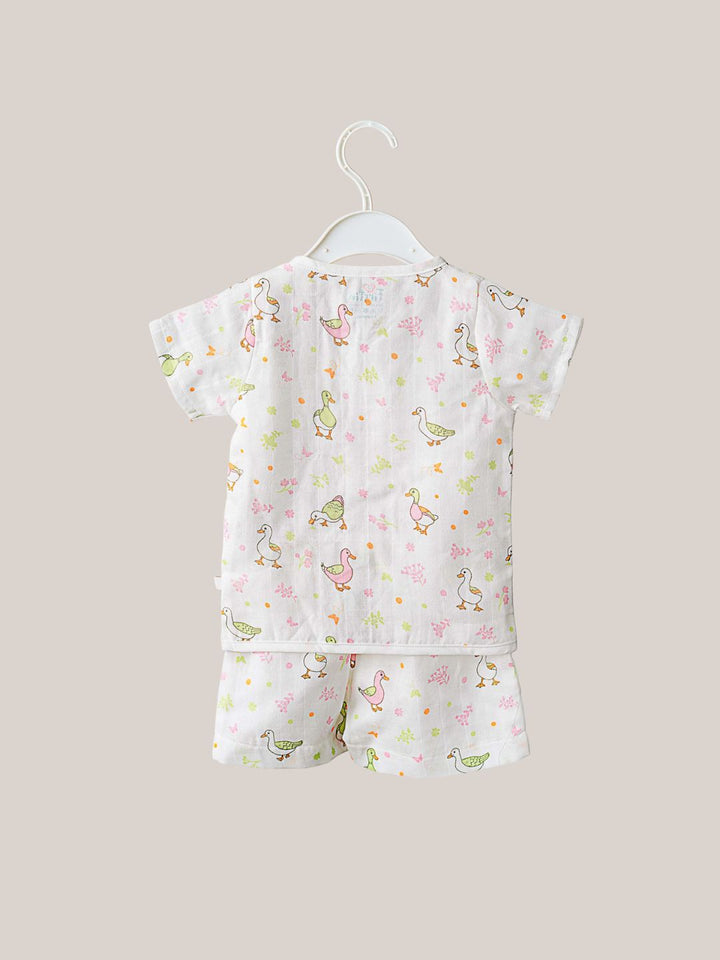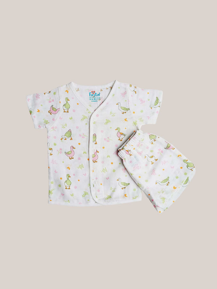 FIRSTIN Lime Cream Runner Duck White Base Muslin Jabla Shorts Set Half Sleeve
