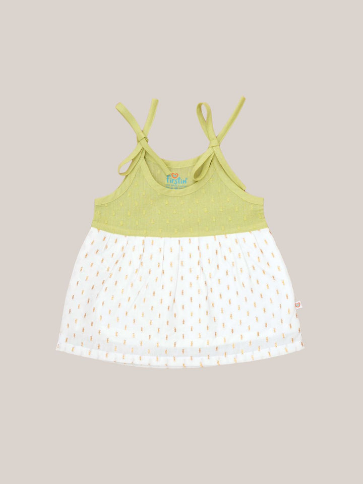 FIRSTIN Lurex Dobby Knotted Frock - Palm Green