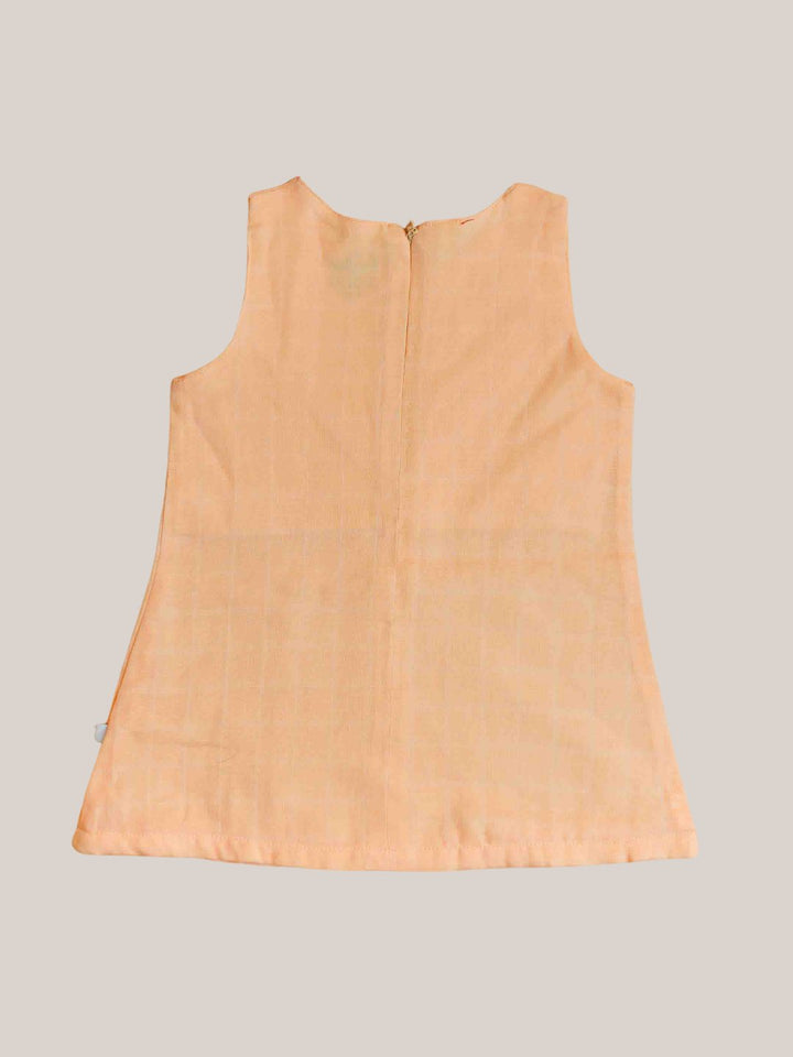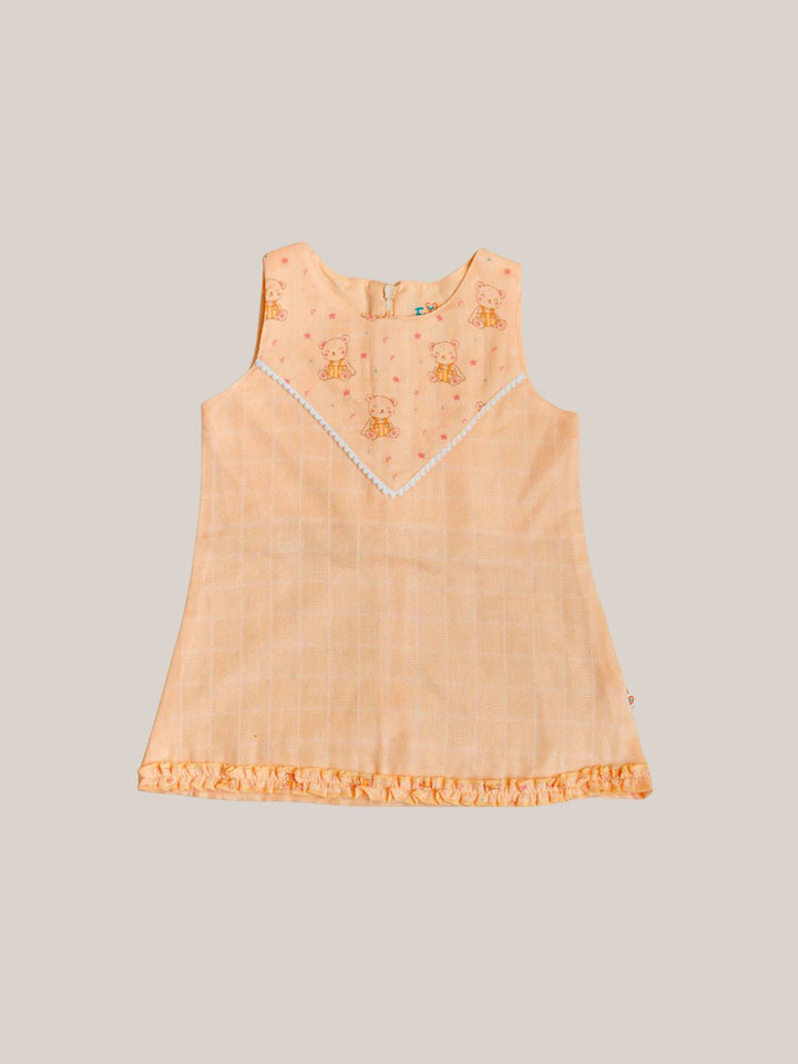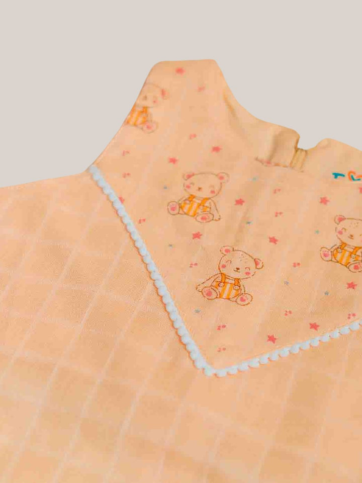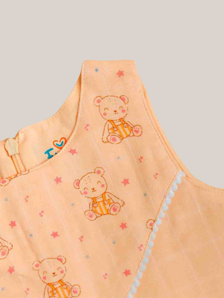 FIRSTIN Muslin Boho Frock Sleeveless - Apricot Sherbet Teddy
