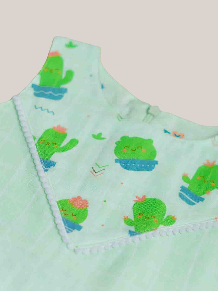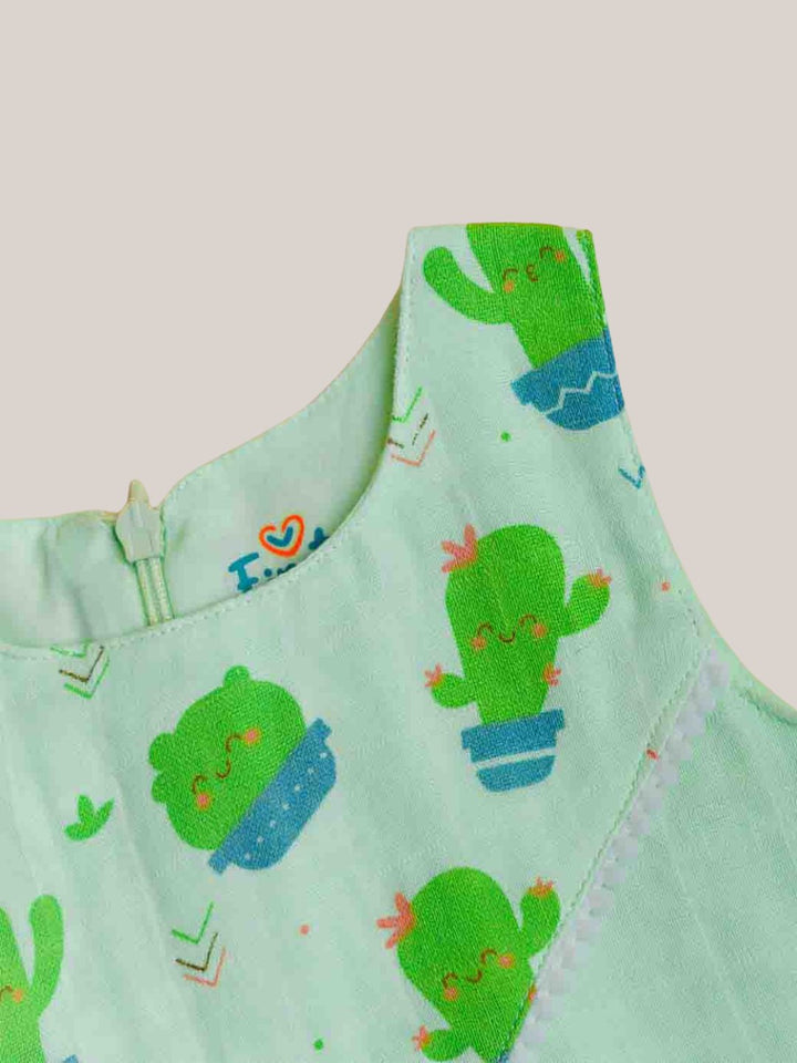 FIRSTIN Muslin Boho Frock Sleeveless - Fluo Green Cactus