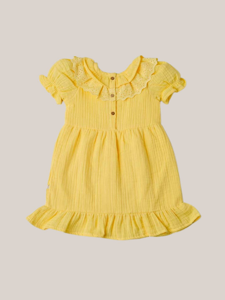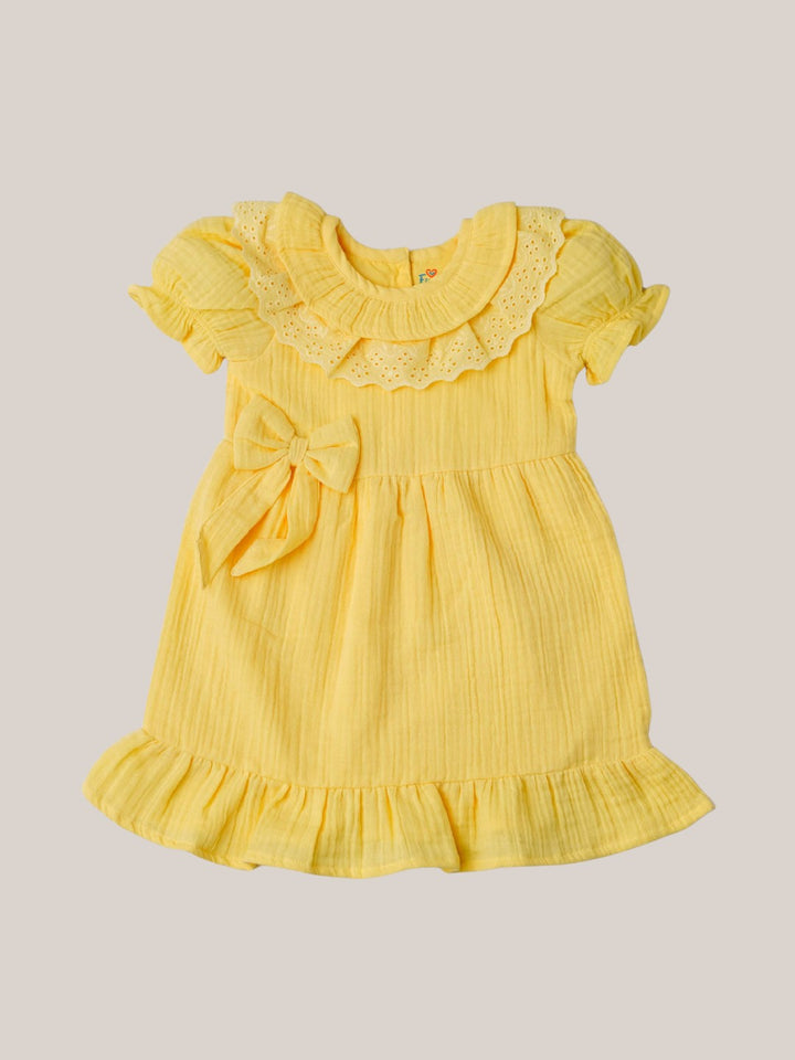 FIRSTIN Muslin Bubble Crinkle Frock (Frill Bow) - Crayola
