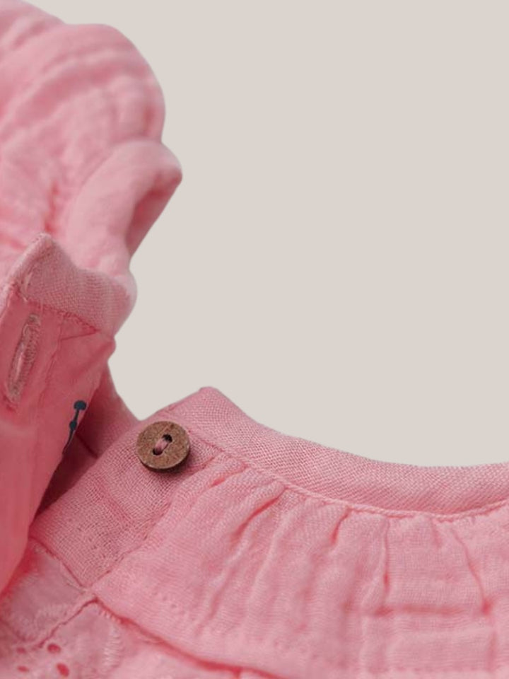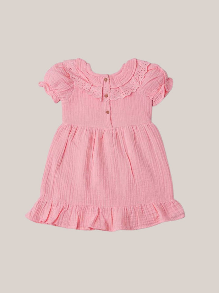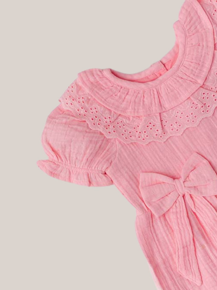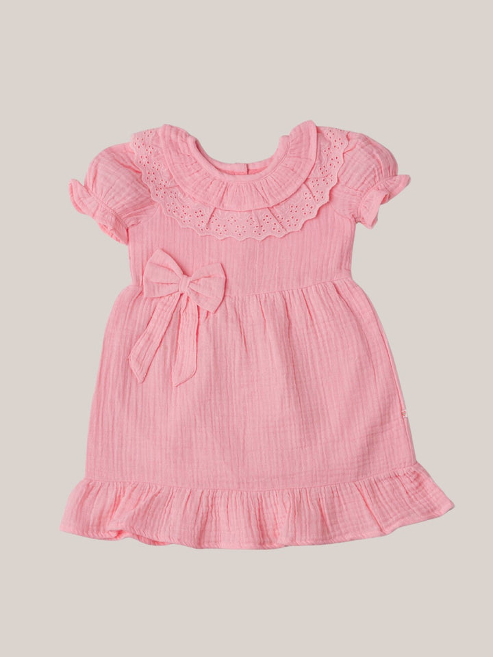 FIRSTIN Muslin Bubble Crinkle Frock (Frill Bow) - Flamingo Pink