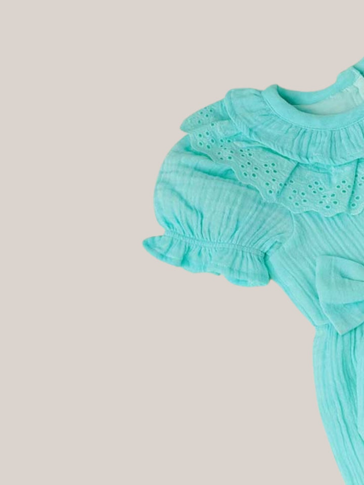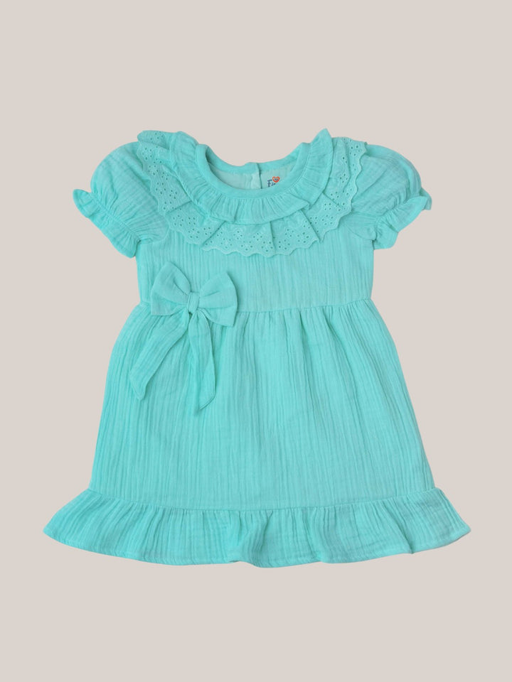 Dress your little one in pure comfort and timeless charm with our Muslin Bubble Crinkle Frock, designed with delicate frill details and a sweet bow accent. Made from ultra-soft 100% muslin cotton, this frock is breathable, lightweight, and gentle on sensitive skin—perfect for all-day wear.