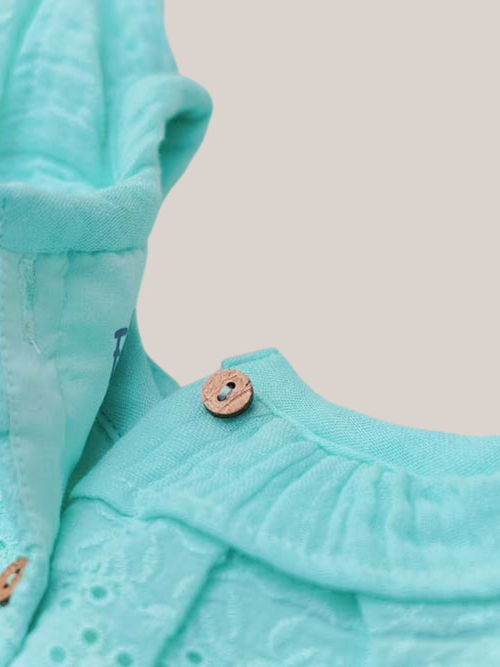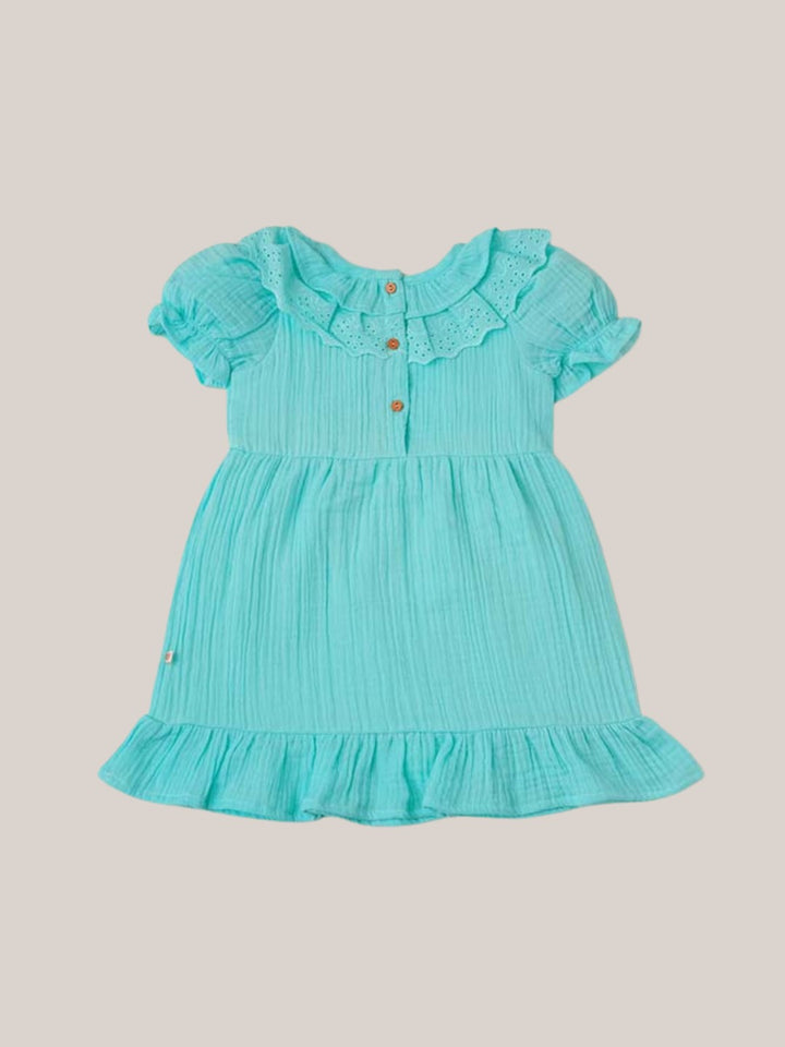 The bubble crinkle texture adds a stylish touch while keeping the outfit airy and cozy. Whether it’s playtime, a family outing, or a special occasion, this frock ensures your baby looks adorable while staying comfortable.