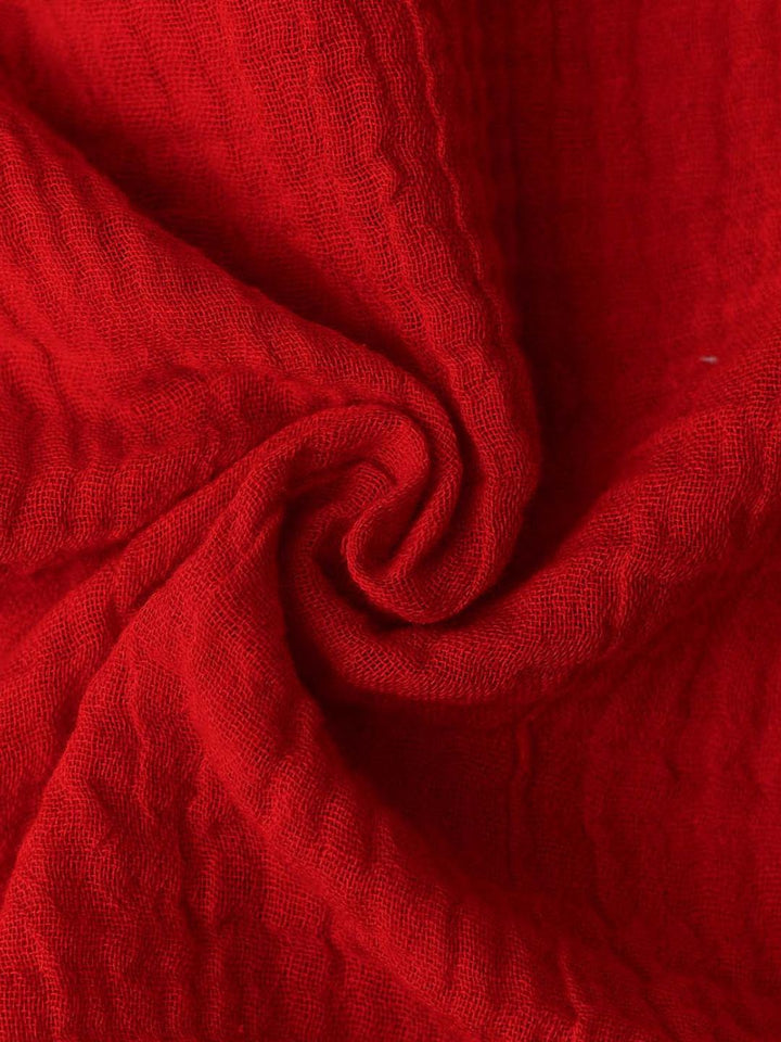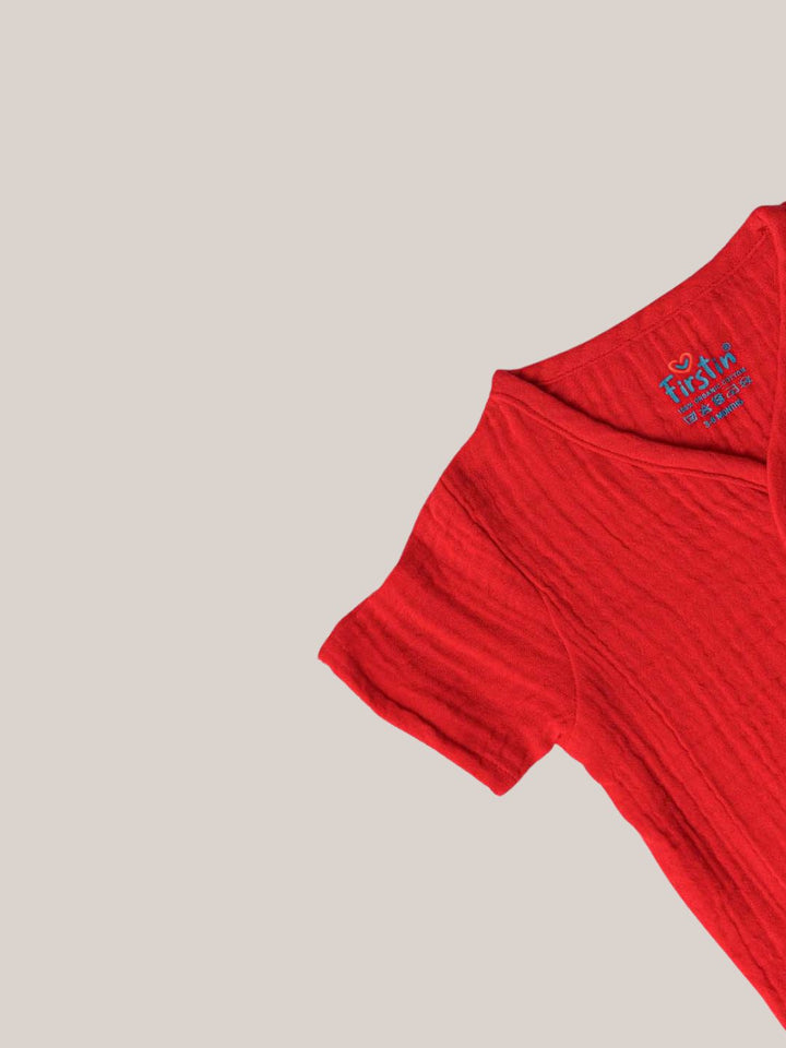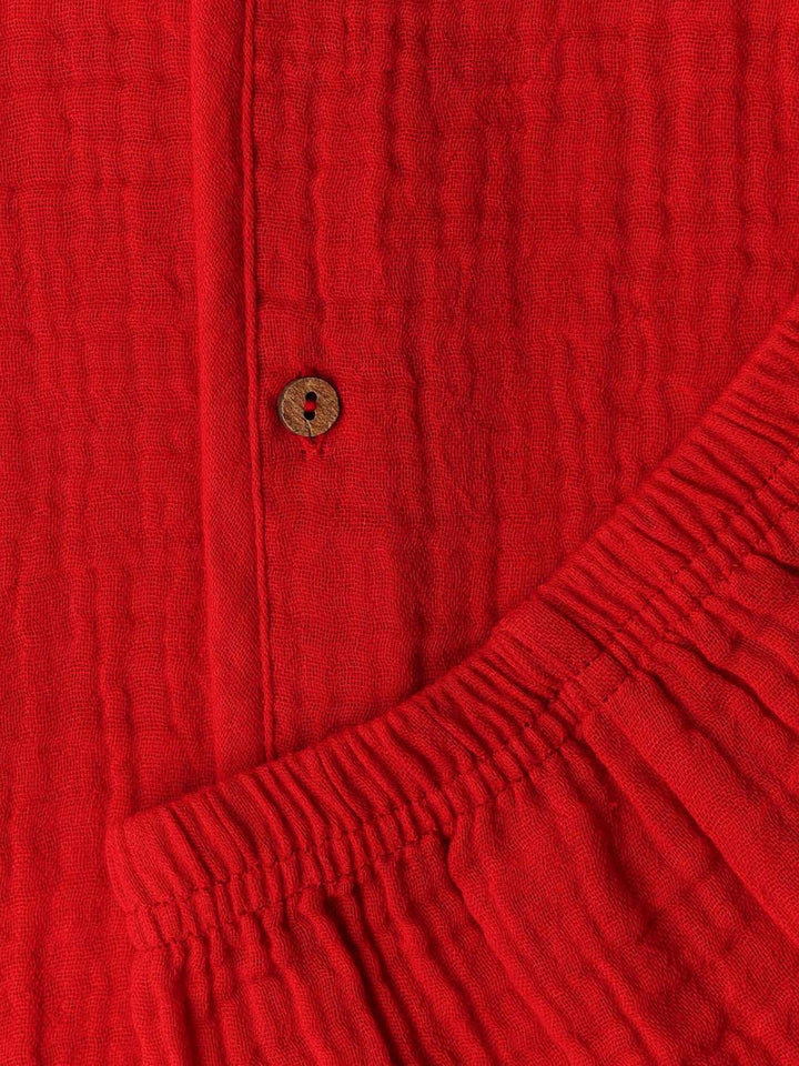 FIRSTIN Muslin Bubble Crinkle Jabla-Shorts Set Half Sleeve - Carmine