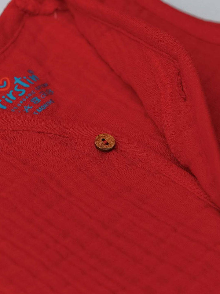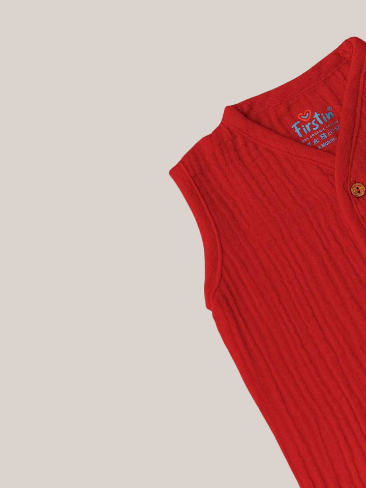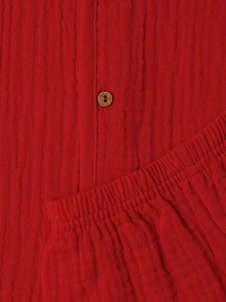 FIRSTIN Muslin Bubble Crinkle Jabla-Shorts Set Sleeveless - Carmine