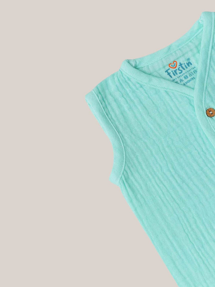 Wrap your little one in breezy comfort with the FIRSTIN Muslin Bubble Crinkle Jabla-Shorts Set Sleeveless. Crafted from premium muslin fabric with a delightful bubble crinkle texture, this set keeps babies cool and comfy even on warm days.
