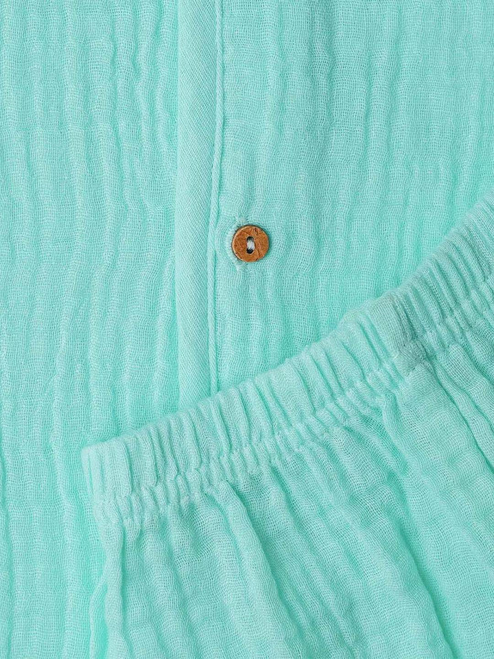 FIRSTIN Muslin Bubble Crinkle Jabla-Shorts Set Sleeveless - Marine