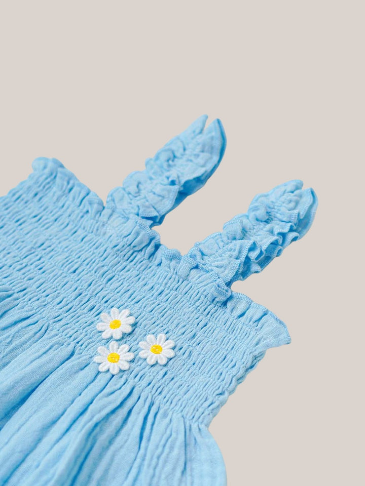 The smocked detailing adds stretch for a perfect fit, while the flowy design gives freedom of movement making it just right for daily wear, festive occasions, or casual outings. Durable and easy to care for, this frock gets even softer after every wash, becoming a wardrobe favourite for your child.