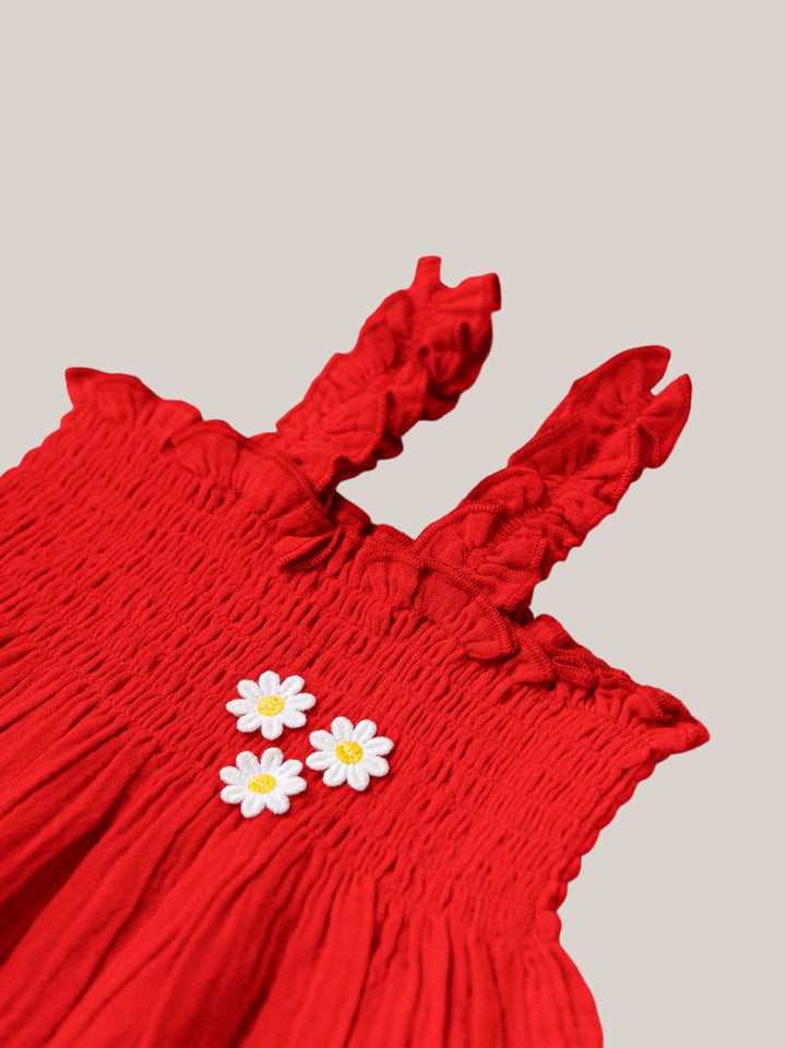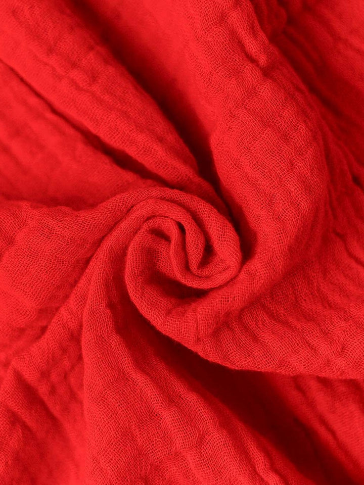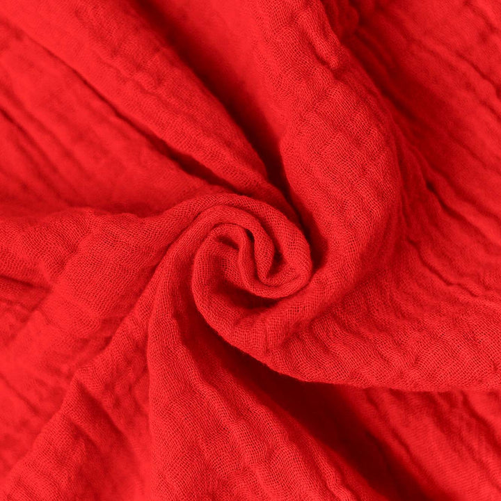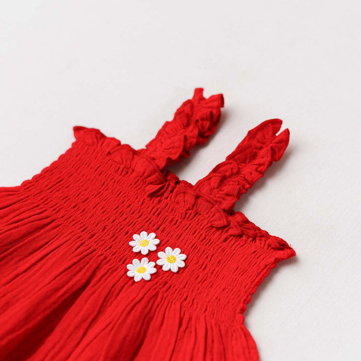 FIRSTIN Muslin Bubble Crinkle Smocking Frock - Carmine