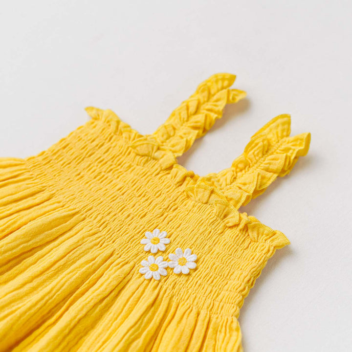 The smocked detailing adds stretch for a perfect fit, while the flowy design gives freedom of movement making it just right for daily wear, festive occasions, or casual outings. Durable and easy to care for, this frock gets even softer after every wash, becoming a wardrobe favorite for your child.