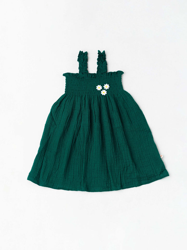 The smocked detailing adds stretch for a perfect fit, while the flowy design gives freedom of movement making it just right for daily wear, festive occasions, or casual outings. Durable and easy to care for, this frock gets even softer after every wash, becoming a wardrobe favorite for your child.