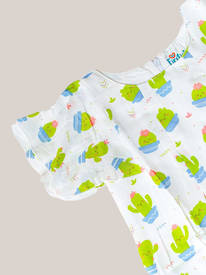 FIRSTIN Muslin Butterfly Sleeve Frock - (W) Fluo Green Cactus