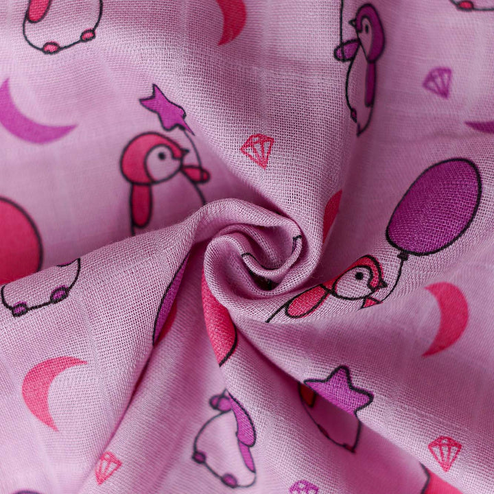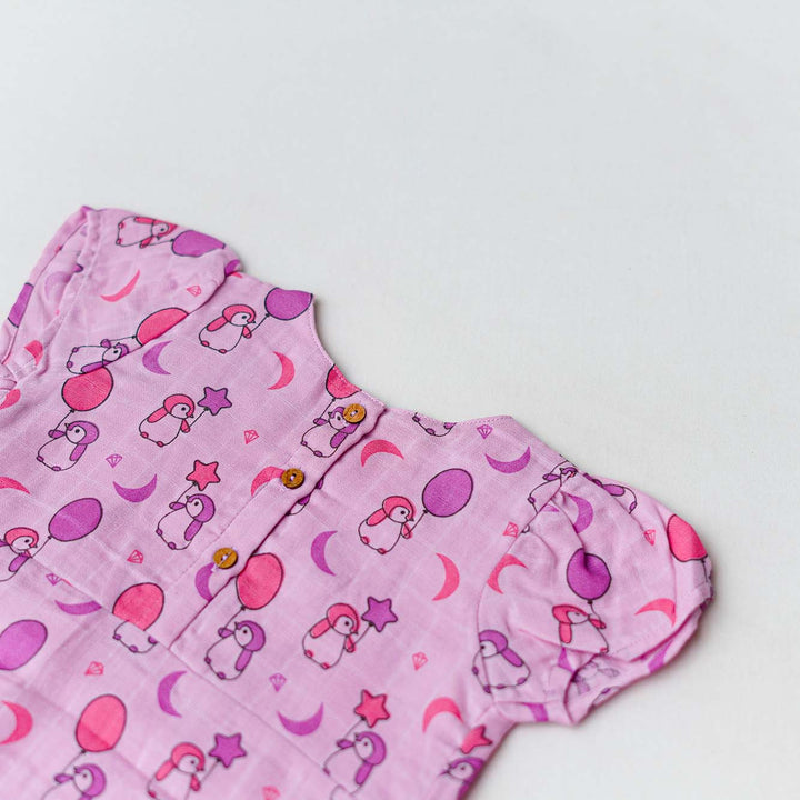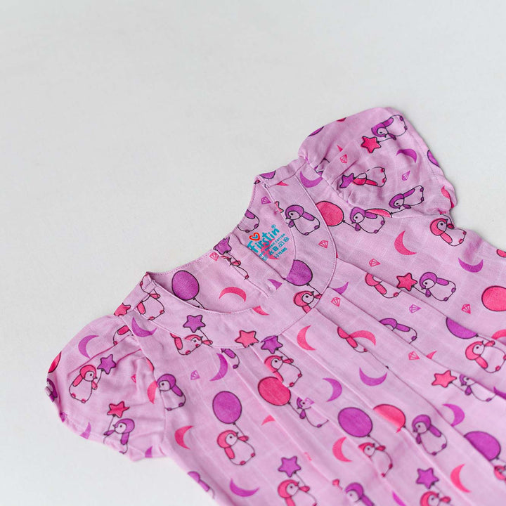 FIRSTIN Muslin Cap Sleeve Frock - Fragrant Lilac Penguin