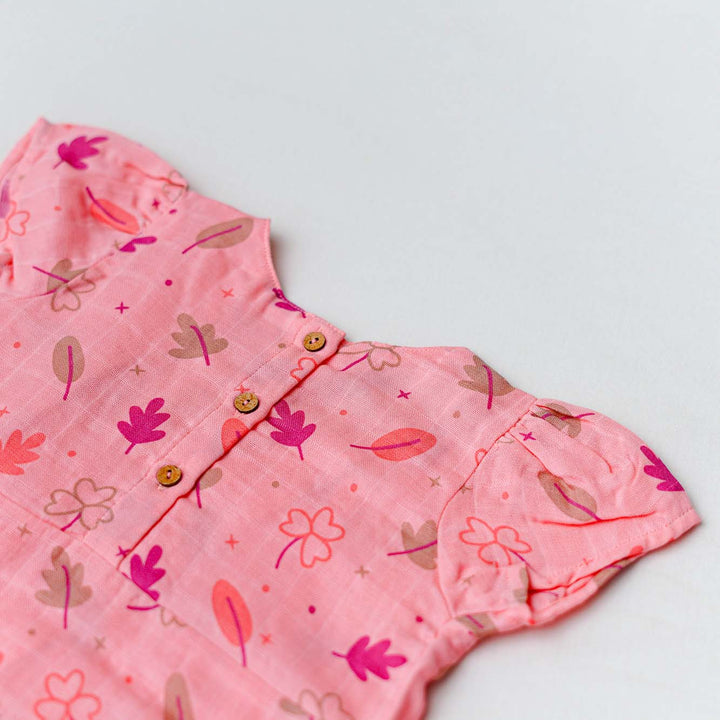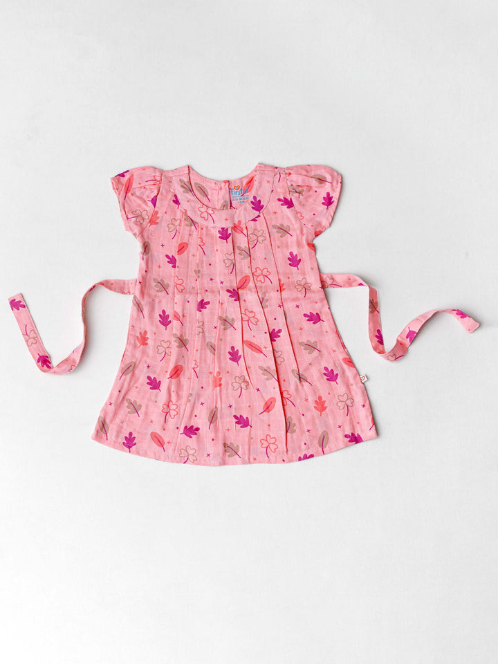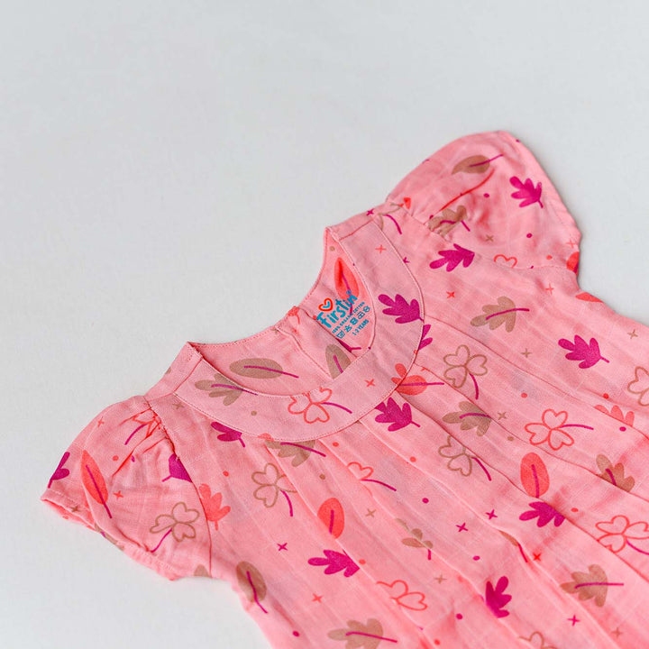 FIRSTIN Muslin Cap Sleeve Frock - Melon Pink Maple