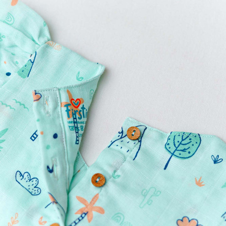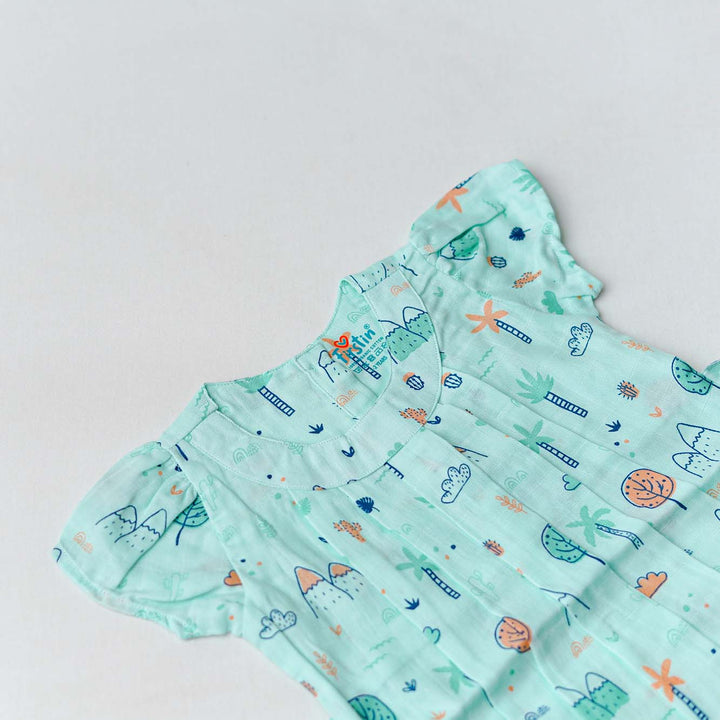 FIRSTIN Muslin Cap Sleeve Frock - Mint Cliff