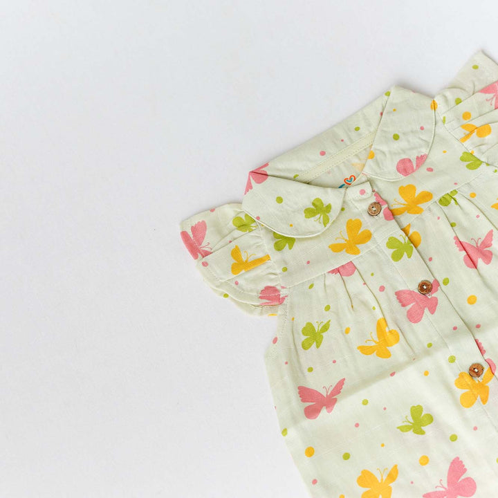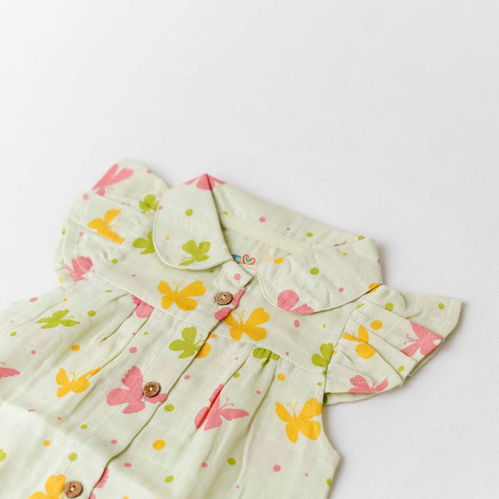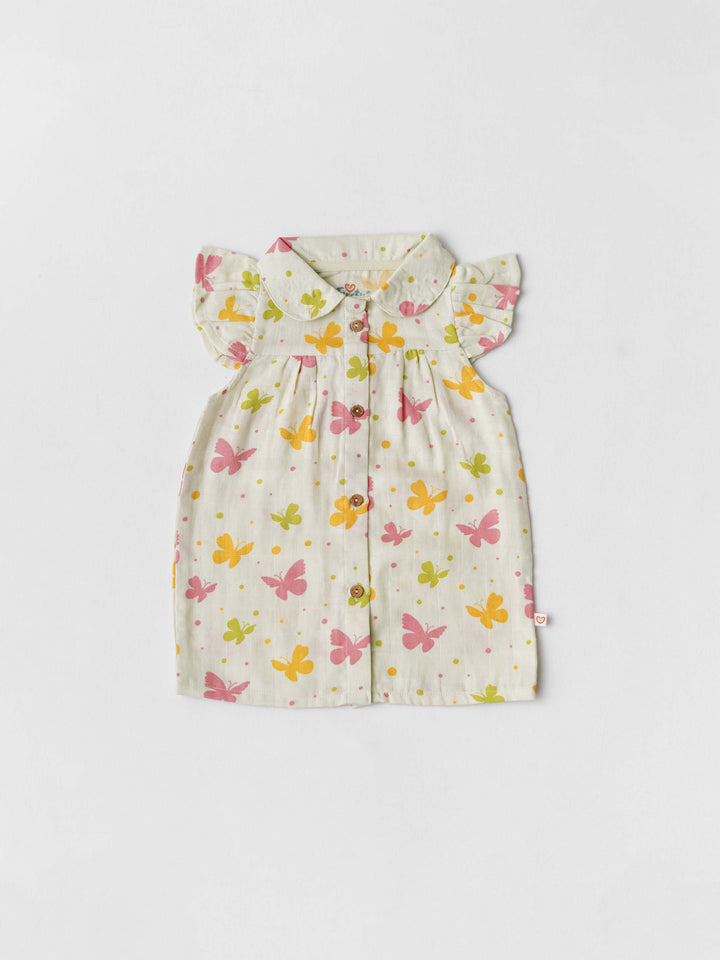 FIRSTIN Muslin Collar Neck Frock - Aloe Wash Butterfly