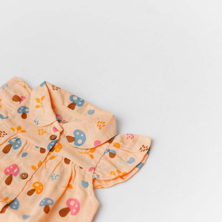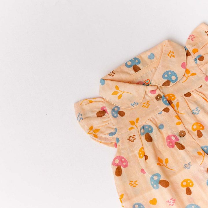 FIRSTIN Muslin Collar Neck Frock - Apricot Sherbet Mushies