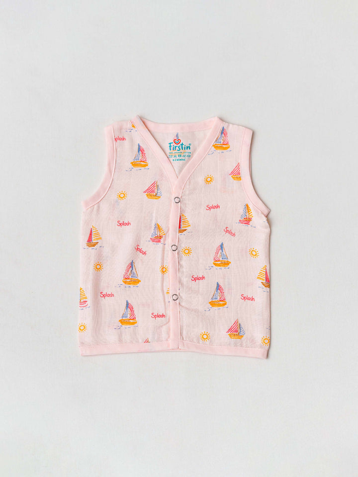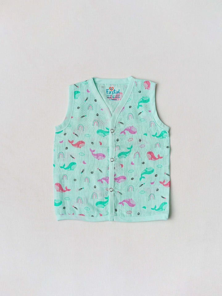 Snap Button Muslin Jabla (Sleeveless) Crafted from 100% organic muslin cotton, this sleeveless jabla is designed for comfort and breathability. The snap button closure ensures easy dressing, perfect for newborns and infants. With a soft and lightweight muslin fabric, it keeps your little one cool and cozy throughout the day. Available in adorable prints and colors.