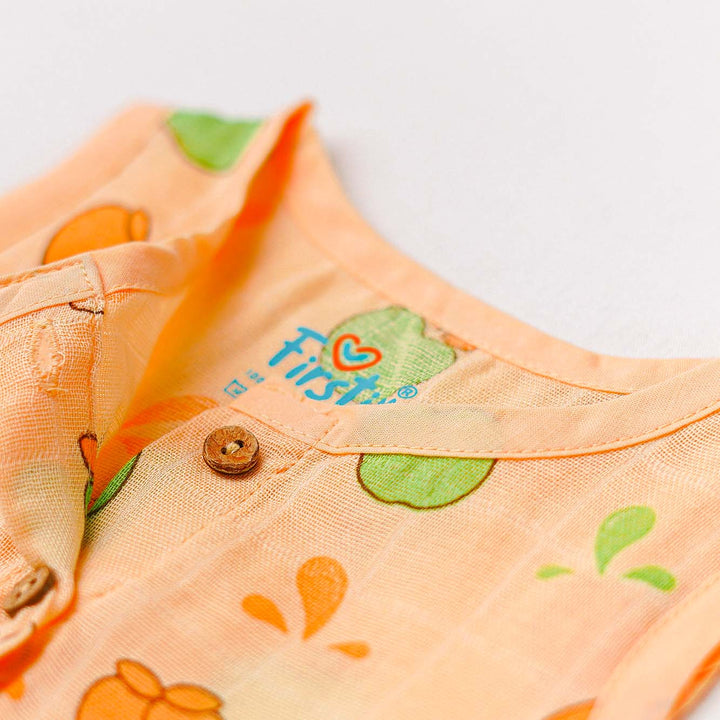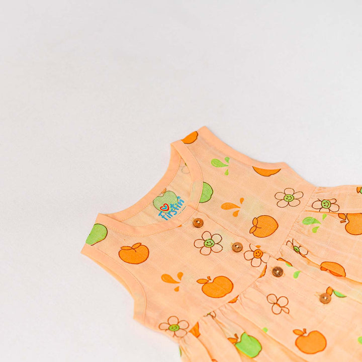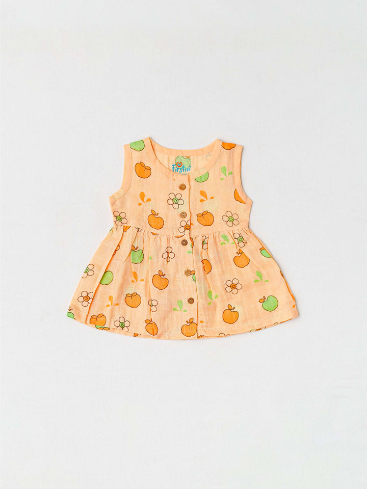 FIRSTIN Muslin Front Open Sleeveless Frock - Apricot Sherbet Fujis