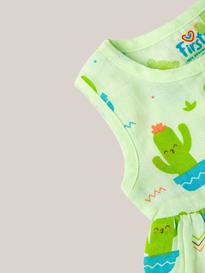 FIRSTIN Muslin Front Open Sleeveless Frock - Fluo Green Cactus