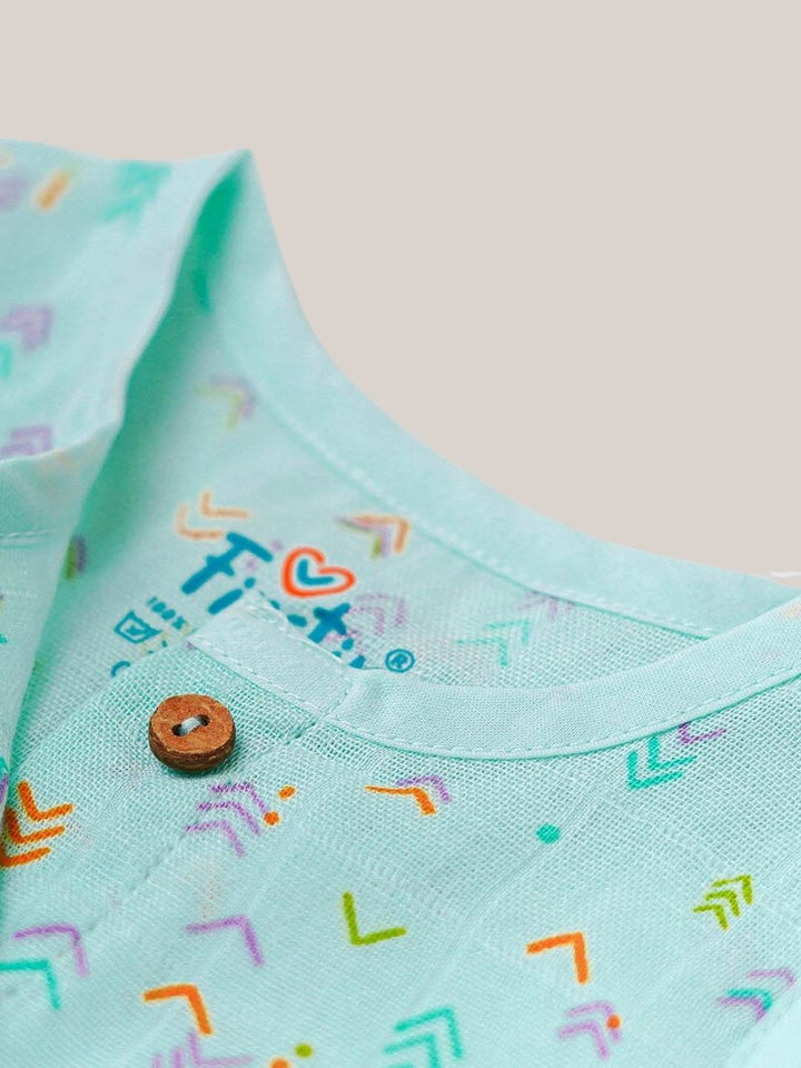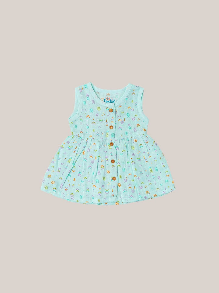 FIRSTIN Muslin Front Open Sleeveless Frock - Mint Multi Arrows