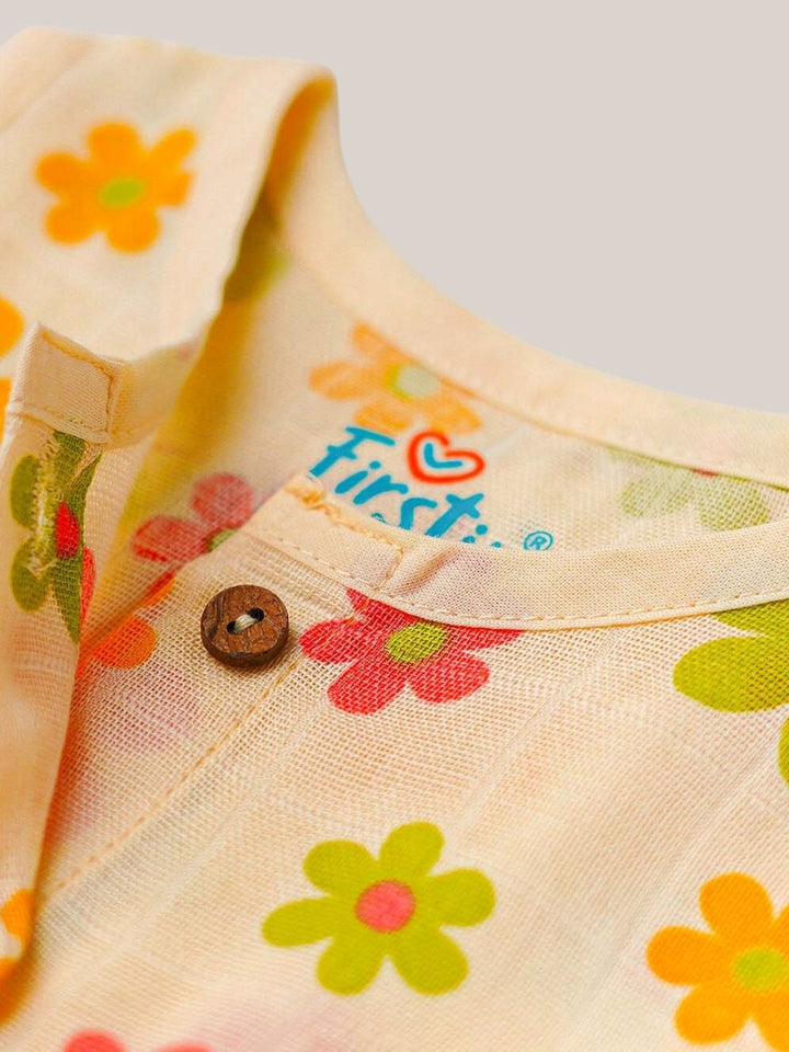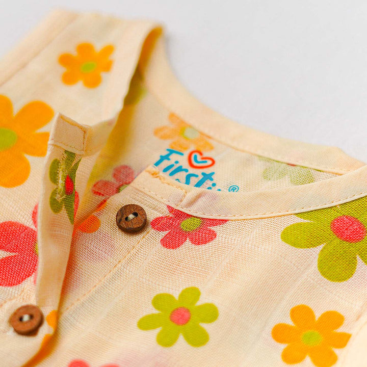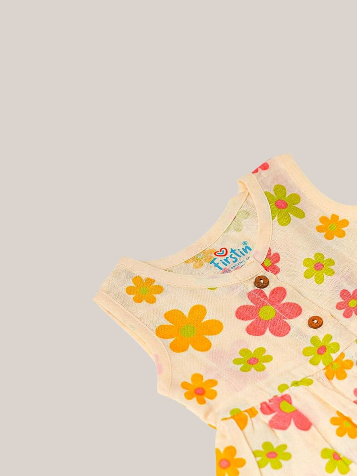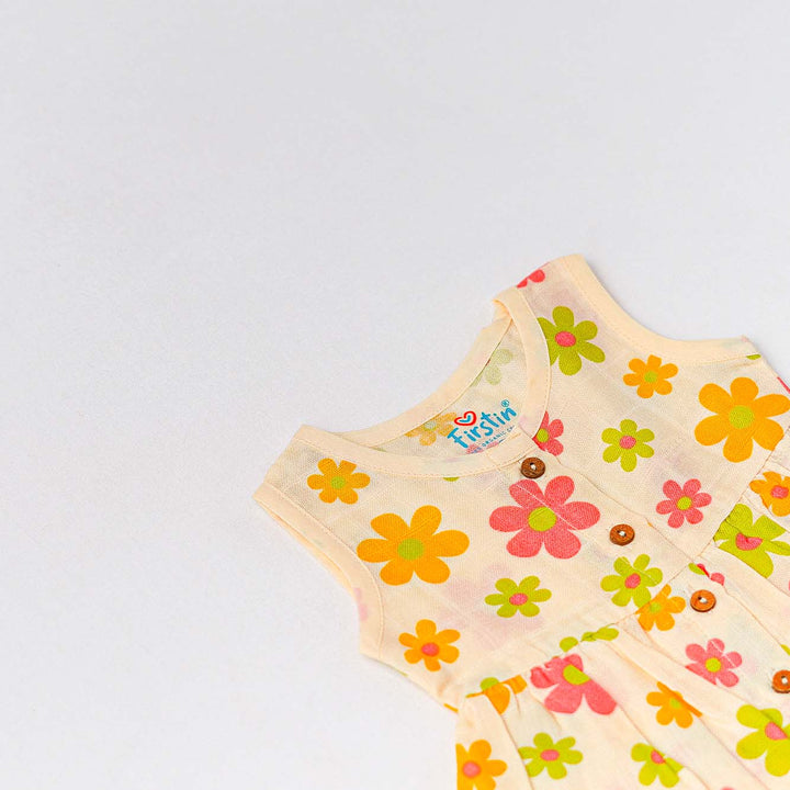 FIRSTIN Muslin Front Open Sleeveless Frock - Vanilla Petals