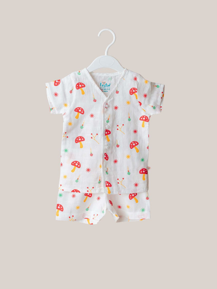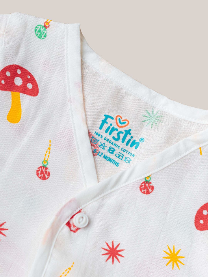 Keep your little one cozy and stylish with the FIRSTIN Muslin Jabla-Shorts Half Sleeve Set. Made from premium 100% muslin cotton, this adorable co-ord set is designed to be gentle on your baby’s sensitive skin while providing maximum breathability and softness.