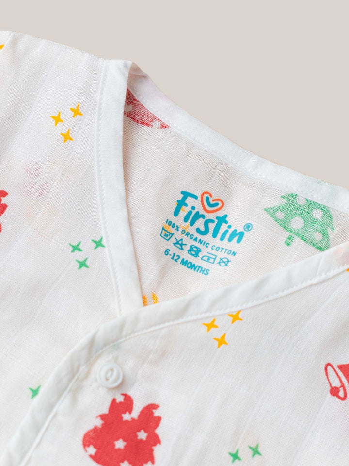 Keep your little one cozy and stylish with the FIRSTIN Muslin Jabla-Shorts Half Sleeve Set. Made from premium 100% muslin cotton, this adorable co-ord set is designed to be gentle on your baby’s sensitive skin while providing maximum breathability and softness.