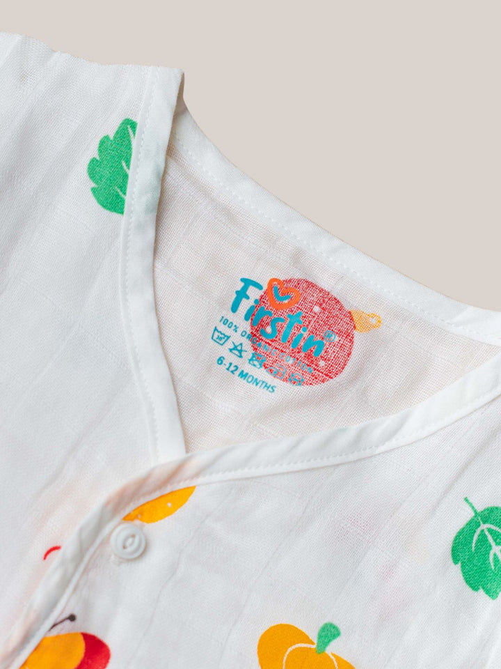 Keep your little one cozy and stylish with the FIRSTIN Muslin Jabla-Shorts Half Sleeve Set. Made from premium 100% muslin cotton, this adorable co-ord set is designed to be gentle on your baby’s sensitive skin while providing maximum breathability and softness.