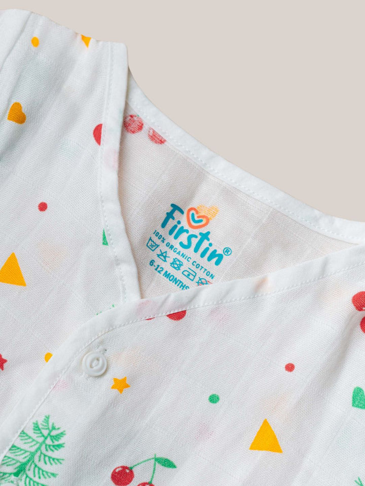 Keep your little one cozy and stylish with the FIRSTIN Muslin Jabla-Shorts Half Sleeve Set. Made from premium 100% muslin cotton, this adorable co-ord set is designed to be gentle on your baby’s sensitive skin while providing maximum breathability and softness.
