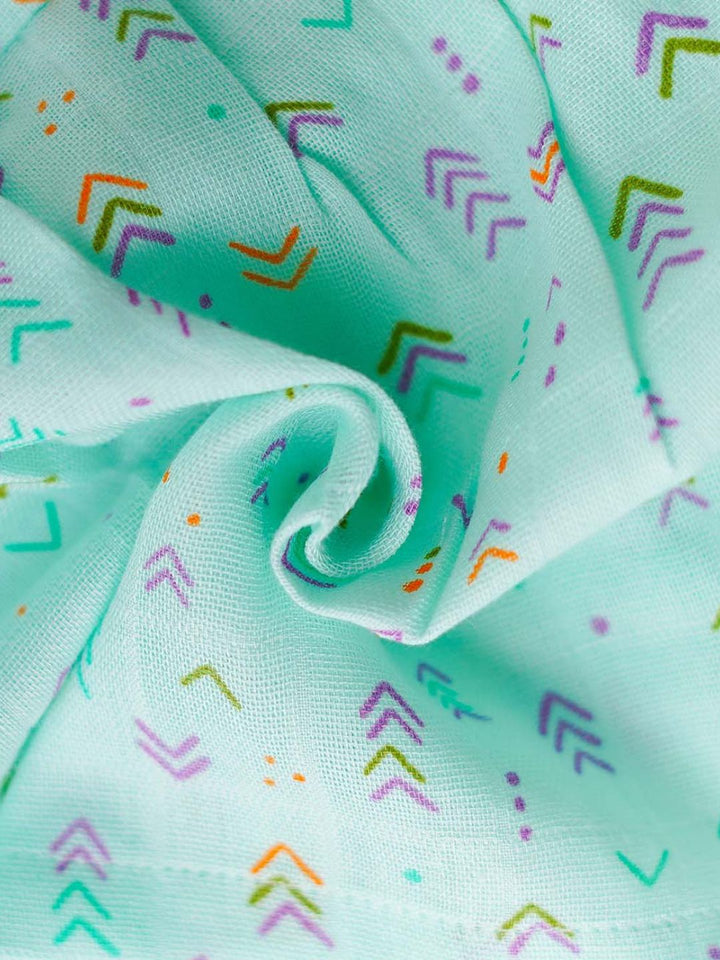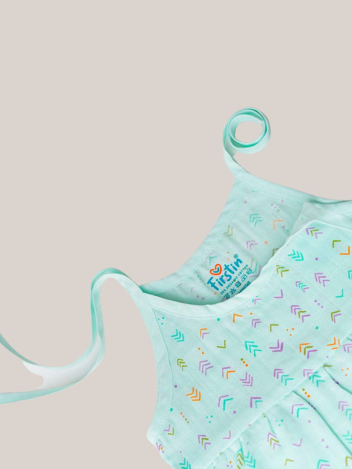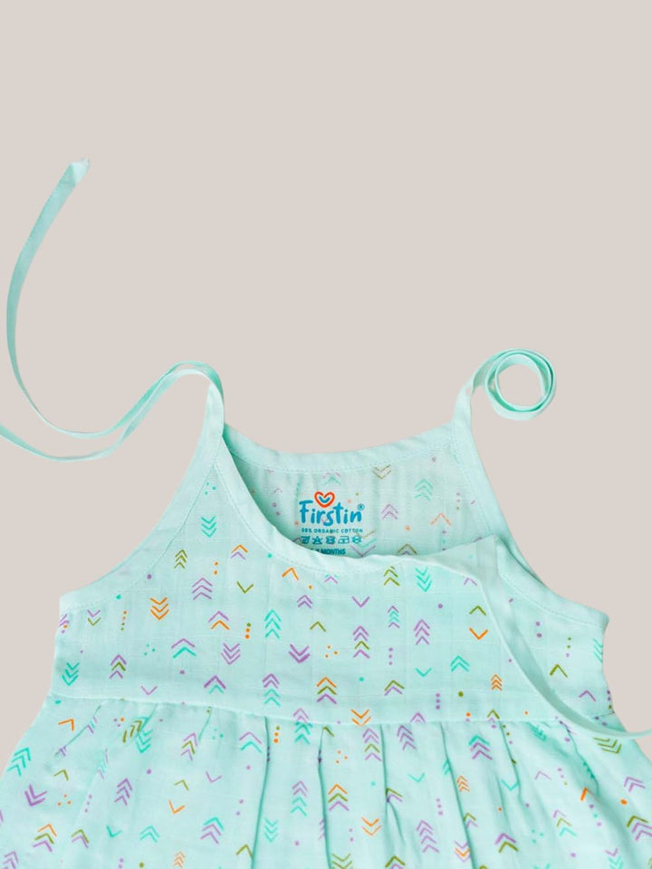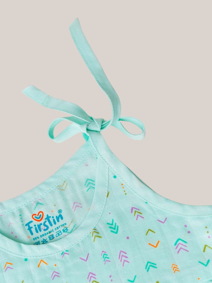 FIRSTIN Muslin Knotted Frock - Mint Multi Arrows