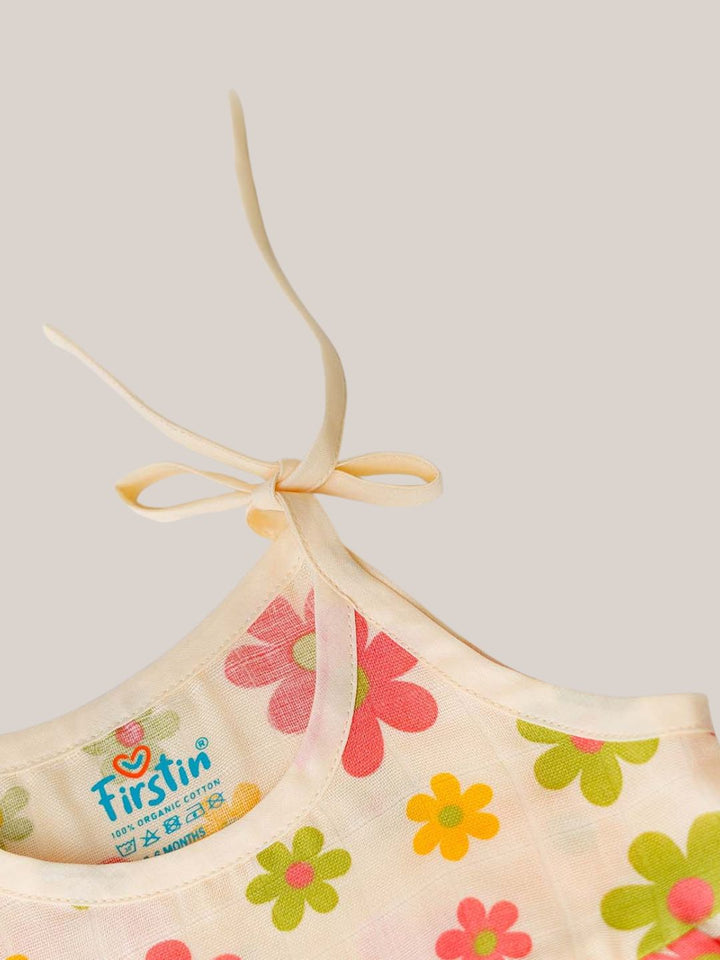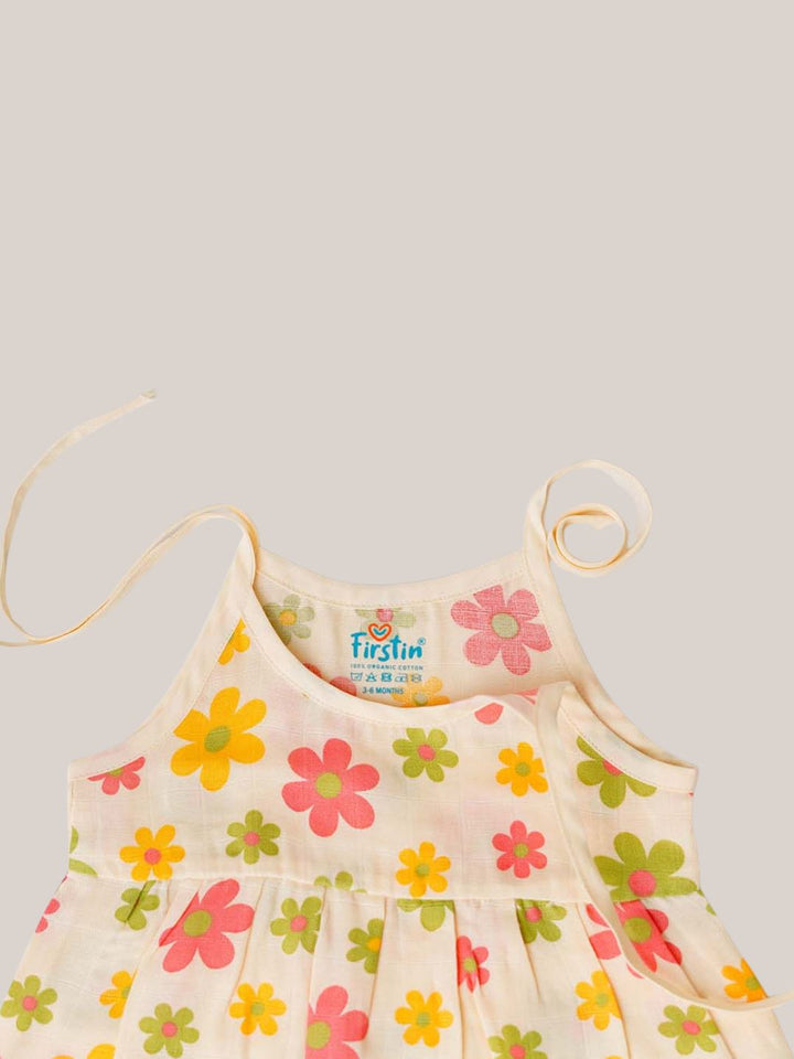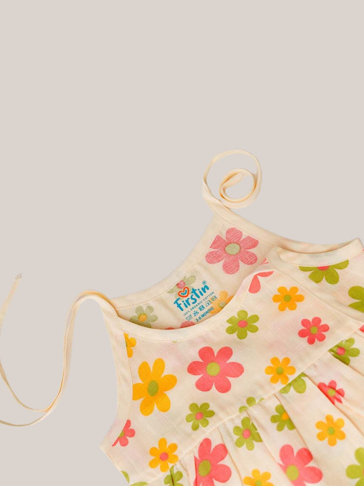 FIRSTIN Muslin Knotted Frock - Vanilla Petals