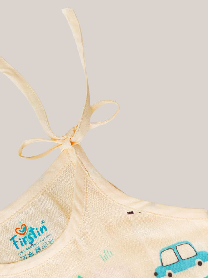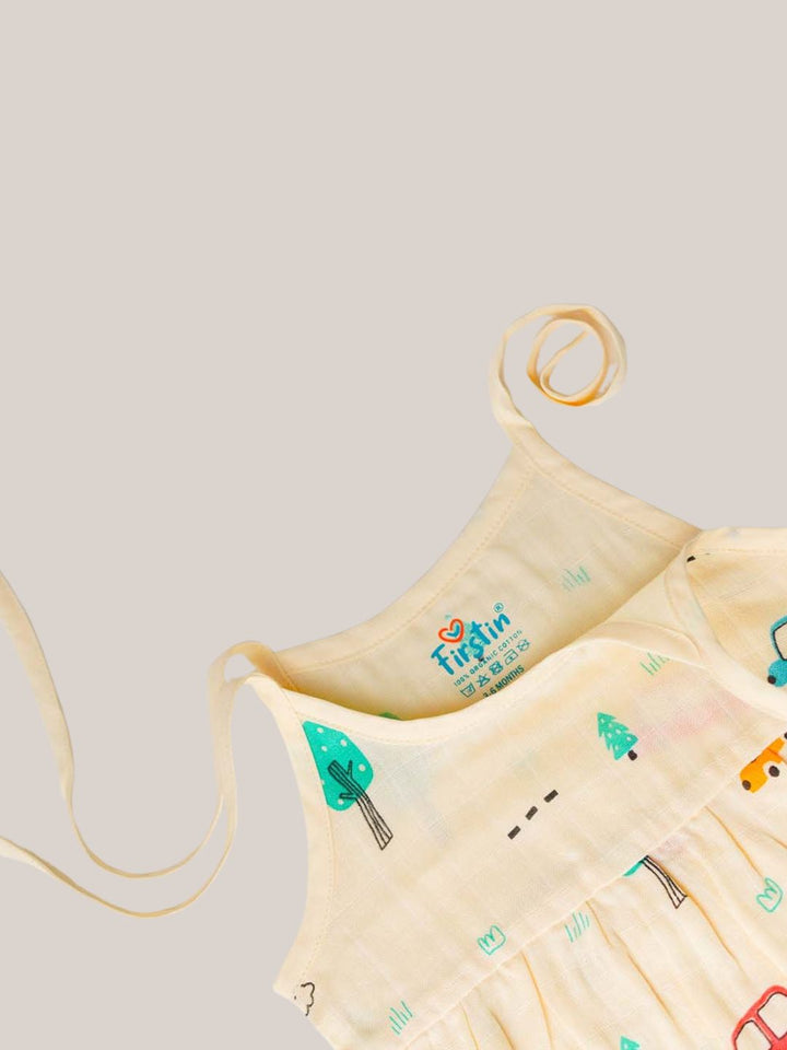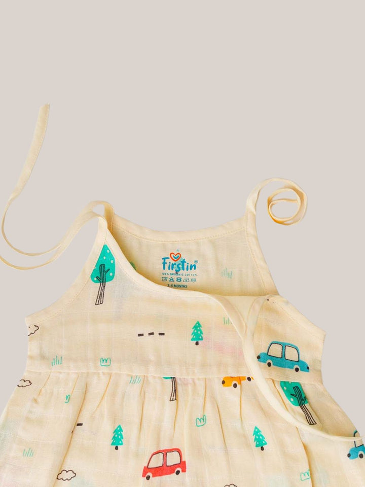 Wrap your little one in gentle comfort and breezy style with the FIRSTIN Muslin Knotted Frock in our enchanting prints.