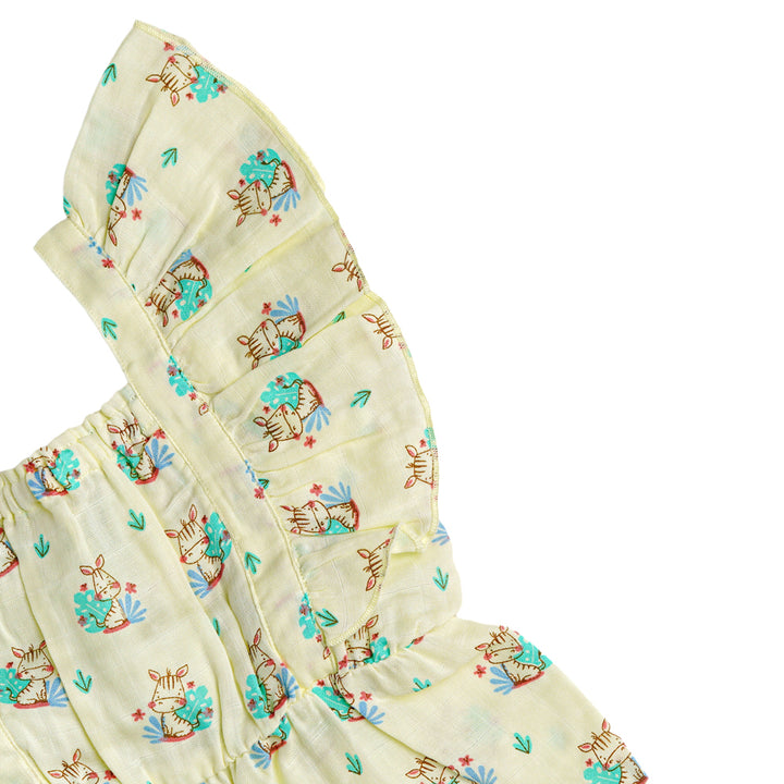 FIRSTIN Muslin Palazzo (Bottom Snap Button) - Yellow Zippy Zebra