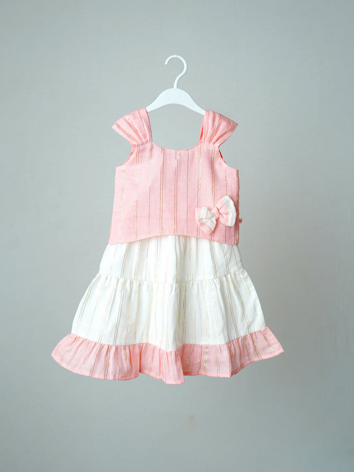 The sleeveless top pairs perfectly with the matching skirt, creating a cute and graceful look ideal for both casual outings and festive occasions. The airy texture and soothing pastel shades make it a must-have in every child’s collection.