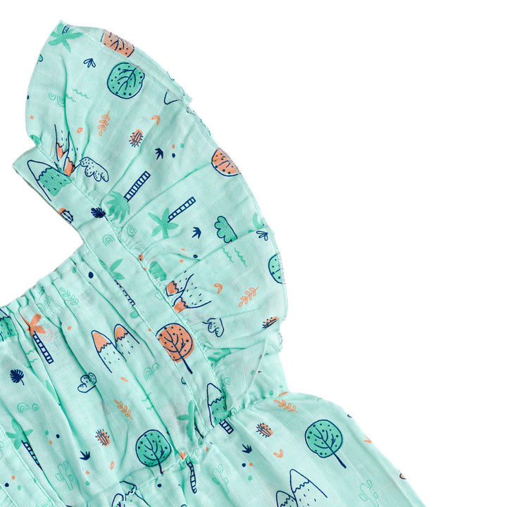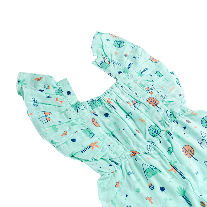 Keep your little one cool and comfy with the FIRSTIN Muslin Palazzo. Made from ultra-soft, breathable muslin cotton. The ruffled shoulder straps add a cute, playful touch, while the gathered elastic waist ensures a snug and flexible fit. Designed with bottom snap buttons for hassle-free diaper changes or potty breaks, it’s perfect for both playtime and outings.