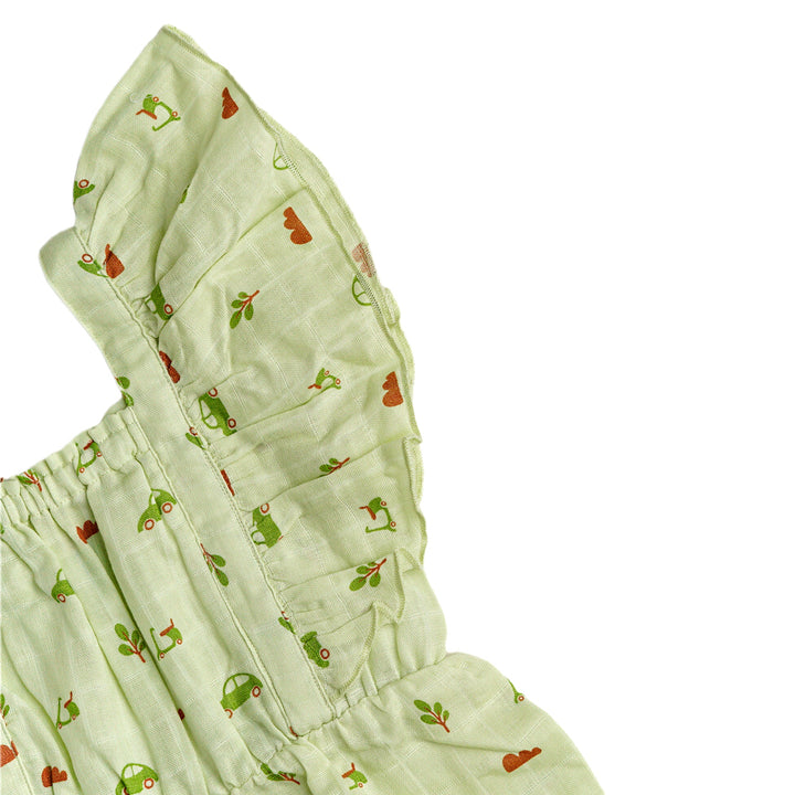 Keep your little one cool and comfy with the FIRSTIN Muslin Palazzo. Made from ultra-soft, breathable muslin cotton. The ruffled shoulder straps add a cute, playful touch, while the gathered elastic waist ensures a snug and flexible fit. Designed with bottom snap buttons for hassle-free diaper changes or potty breaks, it’s perfect for both playtime and outings.