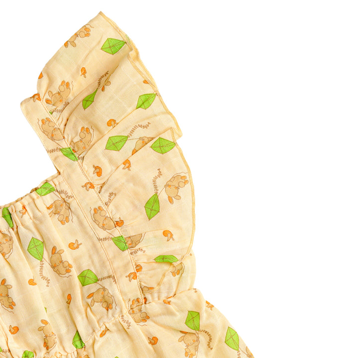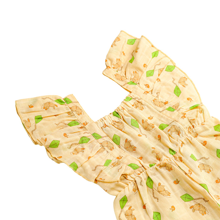 Keep your little one cool and comfy with the FIRSTIN Muslin Palazzo. Made from ultra-soft, breathable muslin cotton. The ruffled shoulder straps add a cute, playful touch, while the gathered elastic waist ensures a snug and flexible fit. Designed with bottom snap buttons for hassle-free diaper changes or potty breaks, it’s perfect for both playtime and outings.