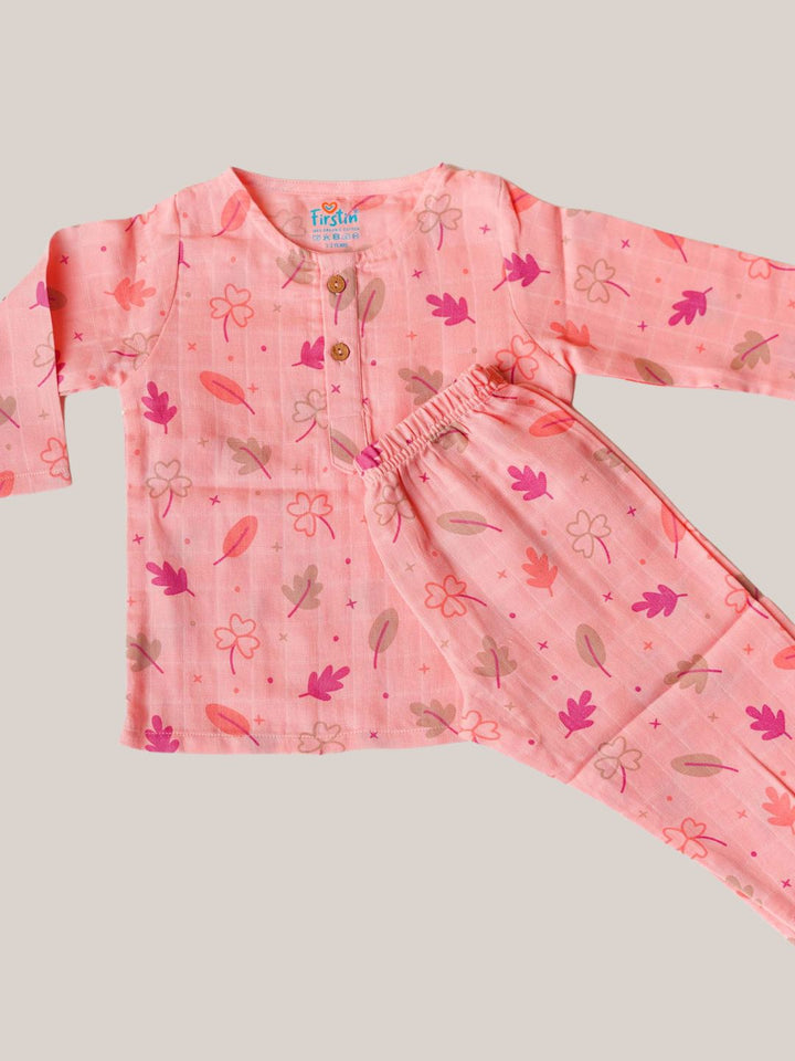 FIRSTIN Muslin Pyjamas Set - Melon Pink Maple
