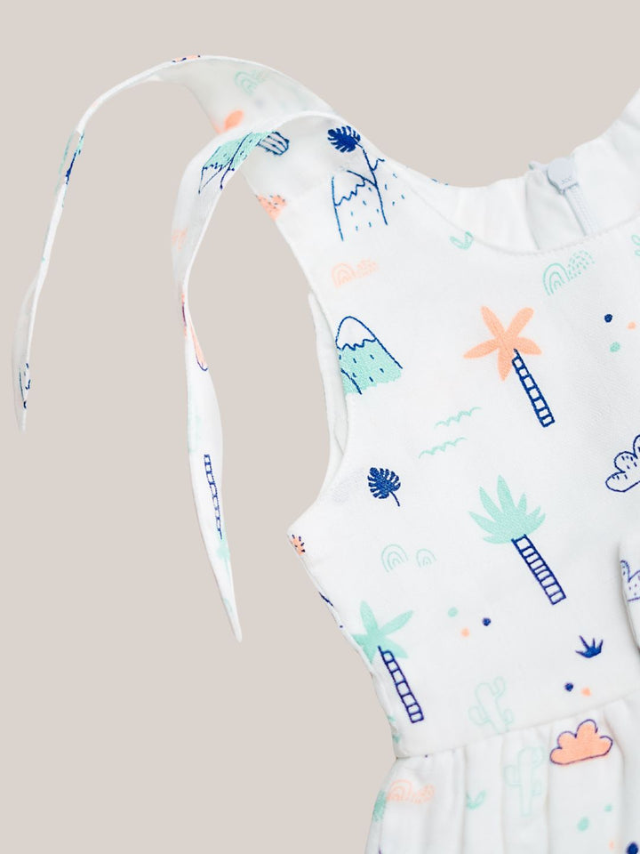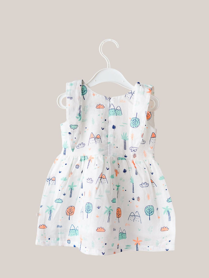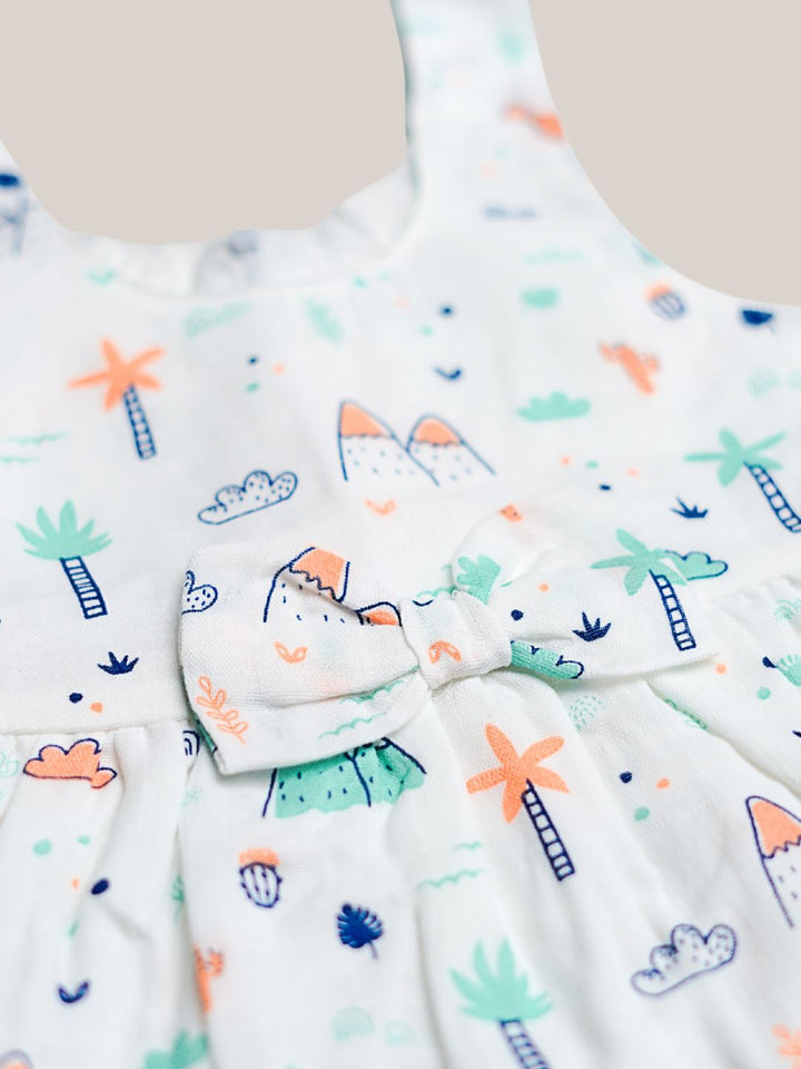 The FIRSTIN Printed Muslin Self-Knotted Frock with Bow is a charming and comfortable dress perfect for your little one. Crafted from soft, breathable muslin fabric, it ensures a gentle touch against the skin, ideal for all-day wear. The frock features a playful, vibrant print that adds a fun and stylish flair to any occasion. The self-knotted design at the waist creates a flattering, adjustable fit, while the bow detail enhances its girly appeal. The dress is both practical and fashionable, offering a versatile choice for casual outings, parties, or family events. Ideal for keeping your child comfortable and stylish, this frock is a must-have addition to their wardrobe.