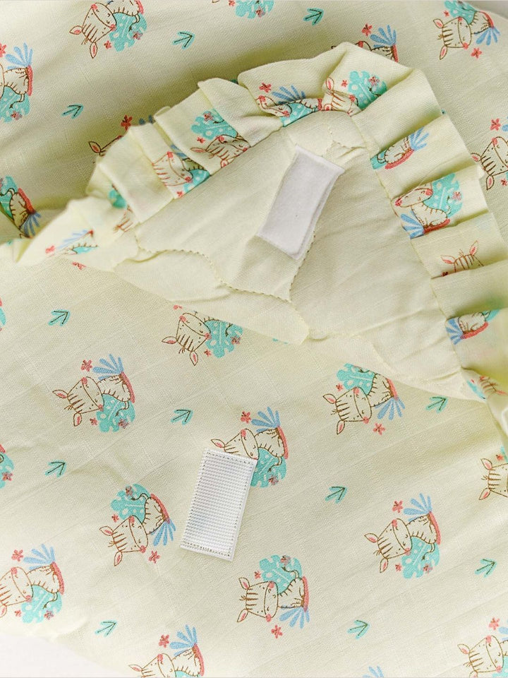 FIRSTIN Muslin Yellow Zippy Zibra Baby Wrap Bed