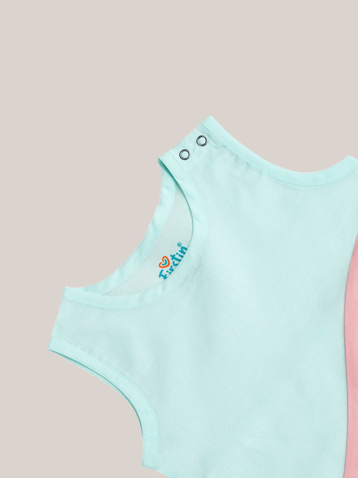 Dress your baby in the gentle comfort of nature with the FIRSTIN Organic Cotton Jabla & Shorts Set. Featuring a charming color-block design, this sleeveless duo set is crafted from 100% organic cotton to keep your baby cool, comfortable, and rash-free all day long.