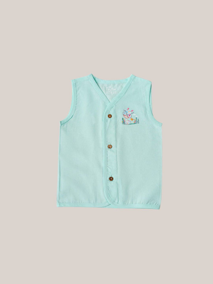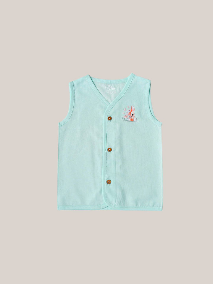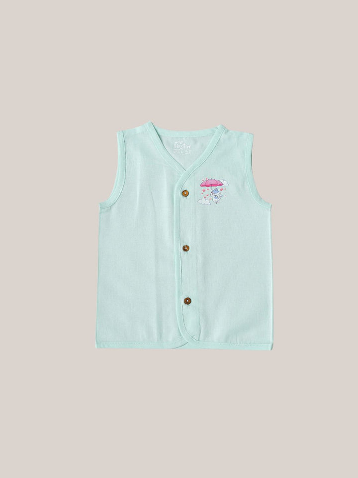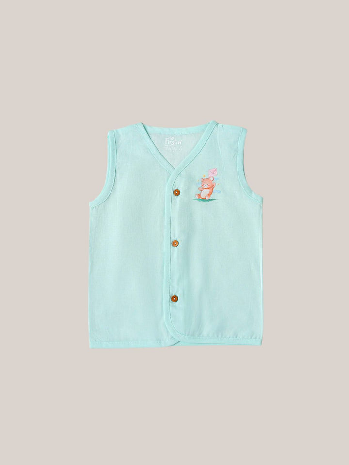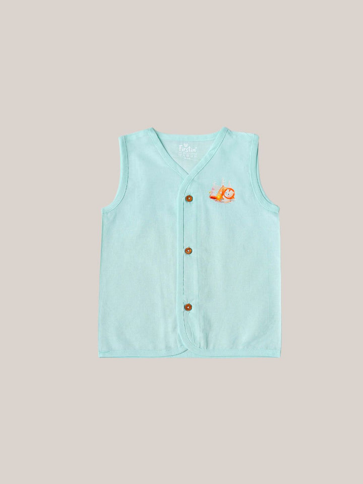 FIRSTIN Organic Cotton Jabla Sleeveless 6 Pcs Combo - Cyan